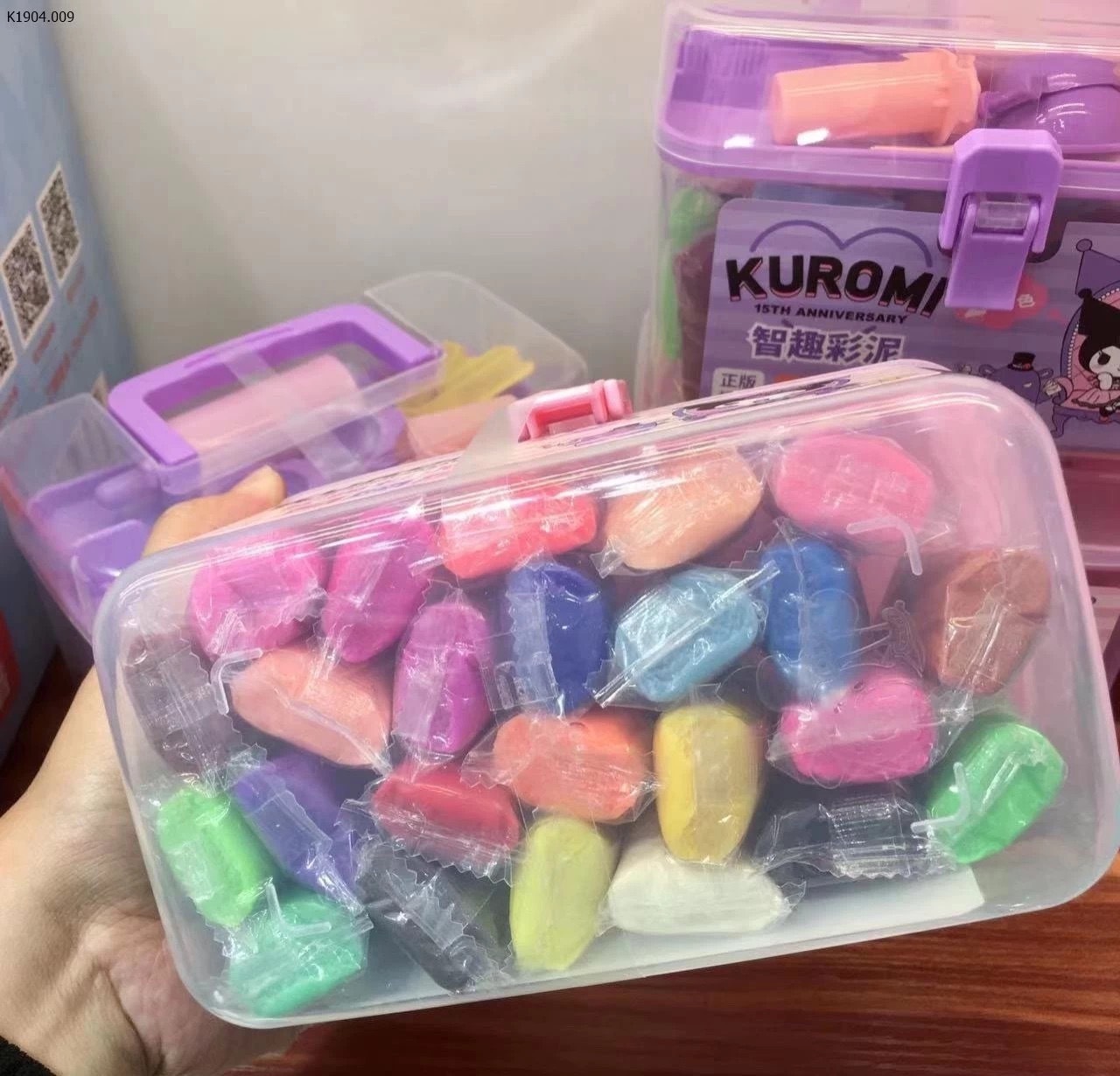 💜💜 Bình thường mua ngoài tiệm sách phải ngót 2lít mới được hộp đất ntn đó các mẹ ạ lấy số lượng là chính nên mời các mẹ đặt cho em bé nhà mình nhé Hộp đất nặn tự khô Kuromi