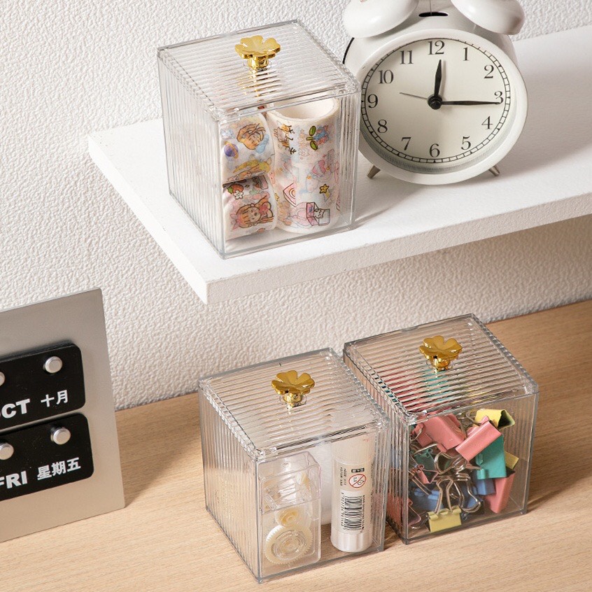 🔹 Hộp đựng bông tẩy trang, đồ trang điểm với thiết kế dạng vuông sang trọng, có nắp đậy chống bụi bẩn, rất vệ sinh. 😍😍😍