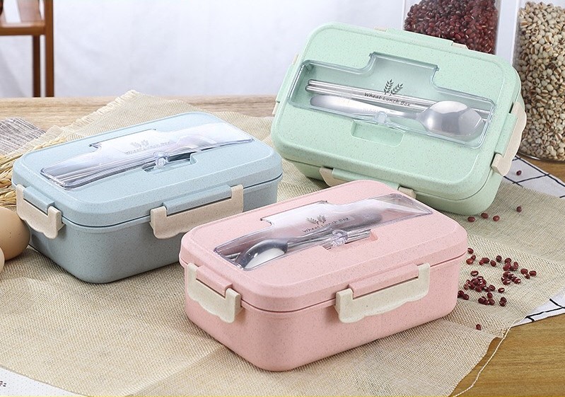 - Thiết kế gọn nhẹ dễ mang đi, đế hộp chất liệu chống chơn kèm theo bộ muỗng đũa inox.