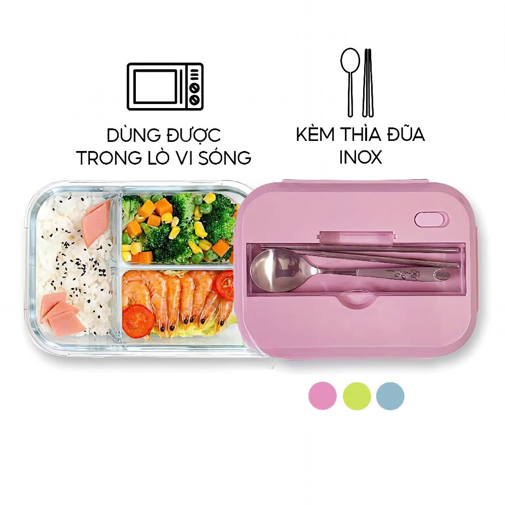 🎒 Hộp đựng cơm thủy tinh BX1001-3GD – Giải pháp ăn uống tiện lợi và an toàn