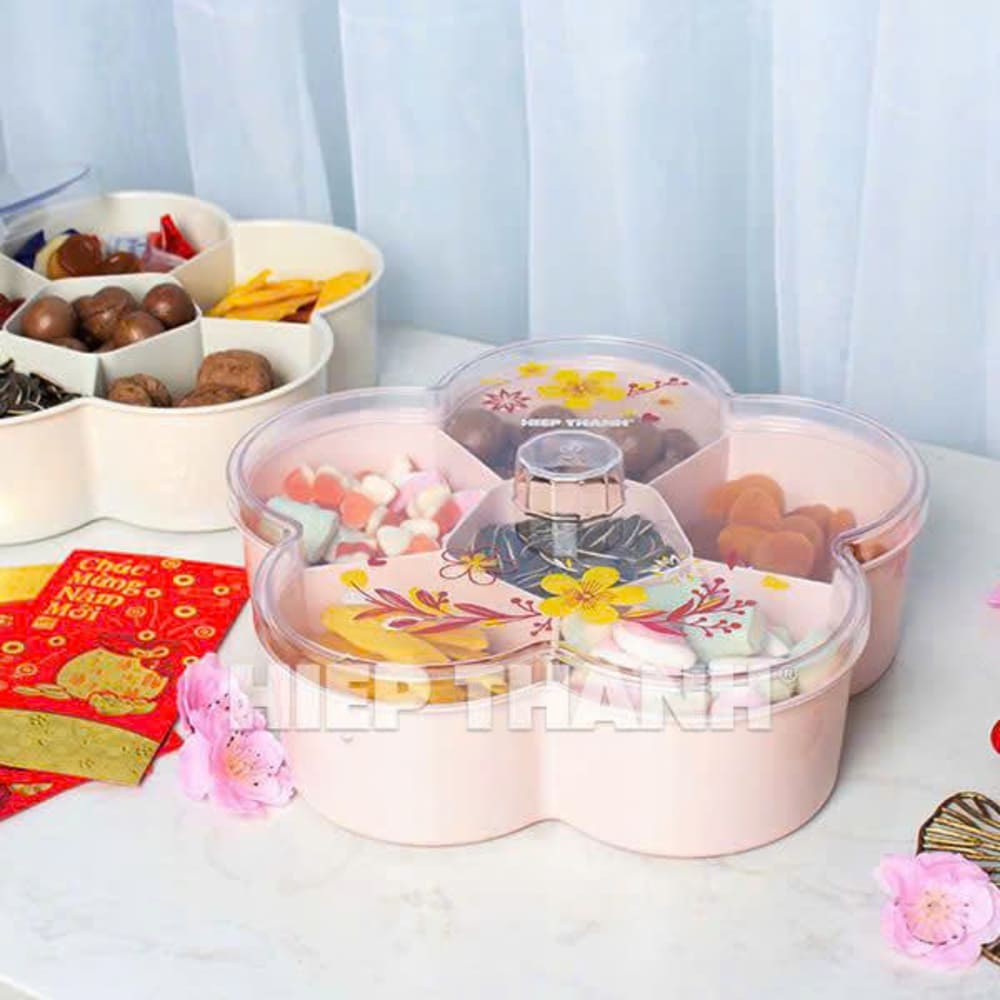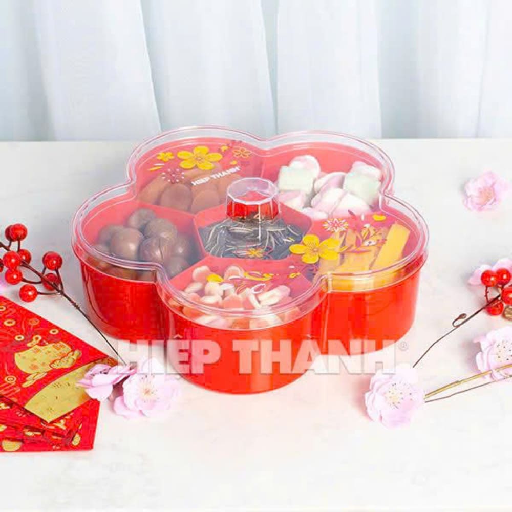 Hộp đựng mứt 6 ngăn Hiệp Thành 622 là vật dụng không thể thiếu trong những ngày Tết, giúp bày trí các loại mứt, hạt, kẹo thật gọn gàng và đẹp mắt. Thiết kế trong suốt sang trọng, dễ quan sát bên trong, nắp đậy kín giúp bảo quản thực phẩm sạch sẽ, tiện lợi cho gia đình và tiếp khách. 🍬✨