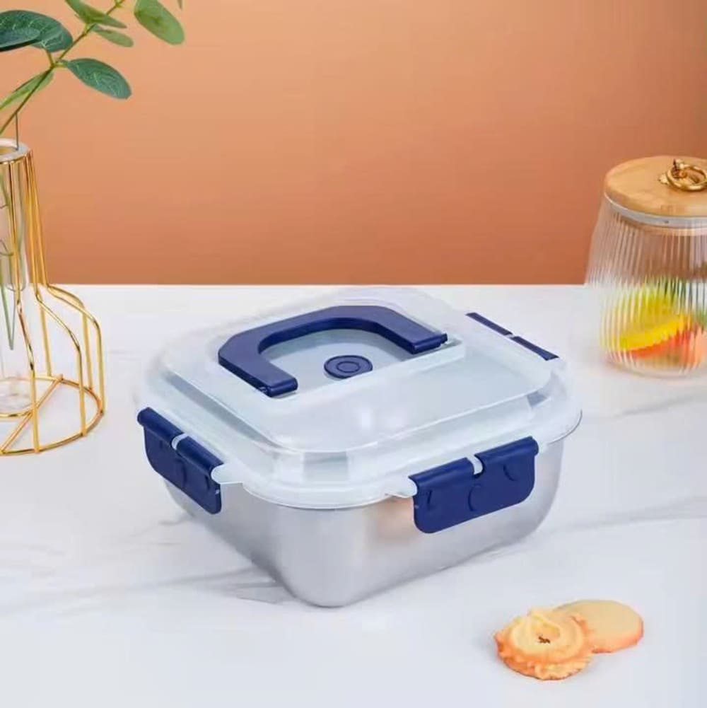 Hộp đựng thực phẩm bằng thép không gỉ có nắp đậy tay cầm cao cấp là giải pháp tiện lợi và sang trọng cho việc bảo quản thực phẩm hằng ngày. Chất liệu inox cao cấp sáng bóng, an toàn cho sức khỏe, không bám mùi, dễ vệ sinh. Thiết kế tay cầm chắc chắn cùng nắp đậy kín giúp bảo quản thức ăn tươi ngon và hạn chế tràn đổ khi di chuyển.