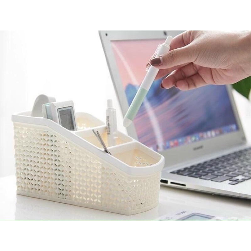 - Hộp Nhựa Tiện Ích 4 Ngăn Việt Nhật Kệ đựng bút Hộp lưu trữ văn phòng phẩm kiểu dáng đơn giản