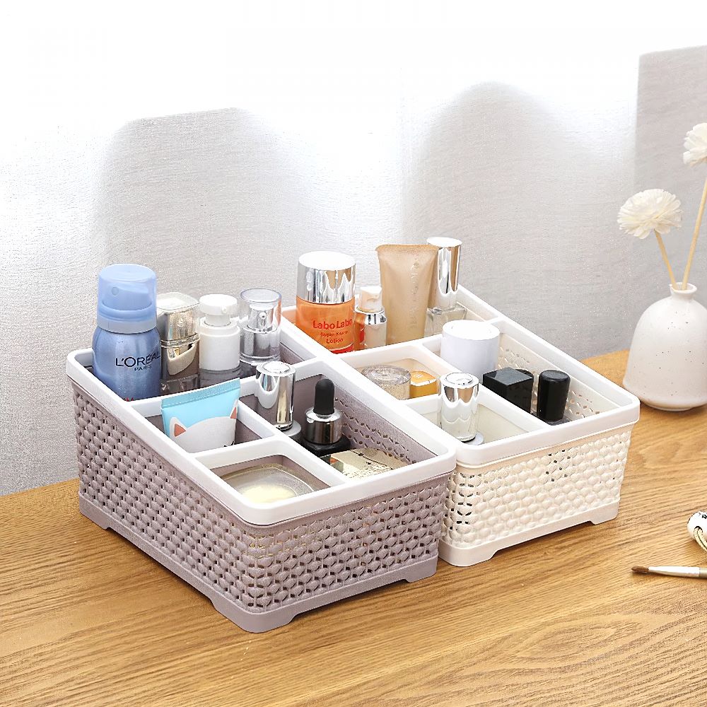 Lưu trữ mỹ phẩm: Với nhiều ngăn riêng biệt, hộp là nơi lý tưởng để đựng các loại mỹ phẩm, dụng cụ trang điểm, giúp bàn trang điểm trở nên ngăn nắp và dễ tìm kiếm sản phẩm.