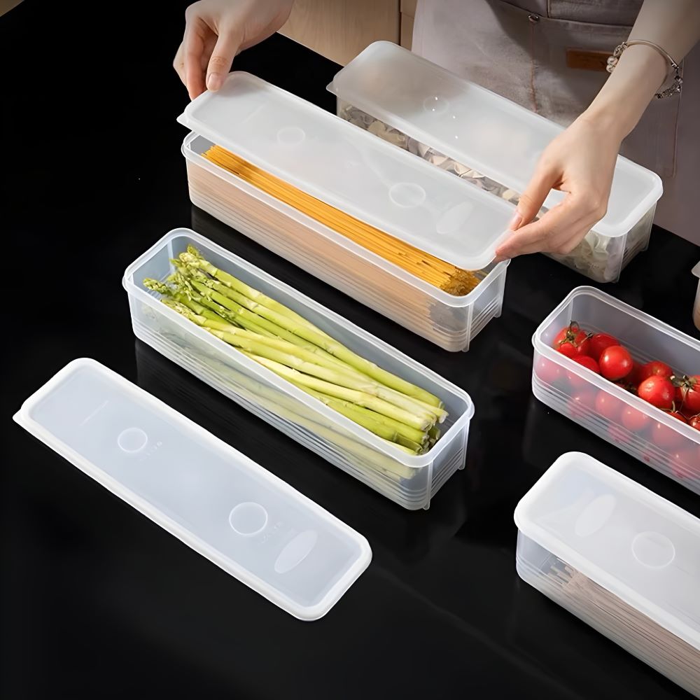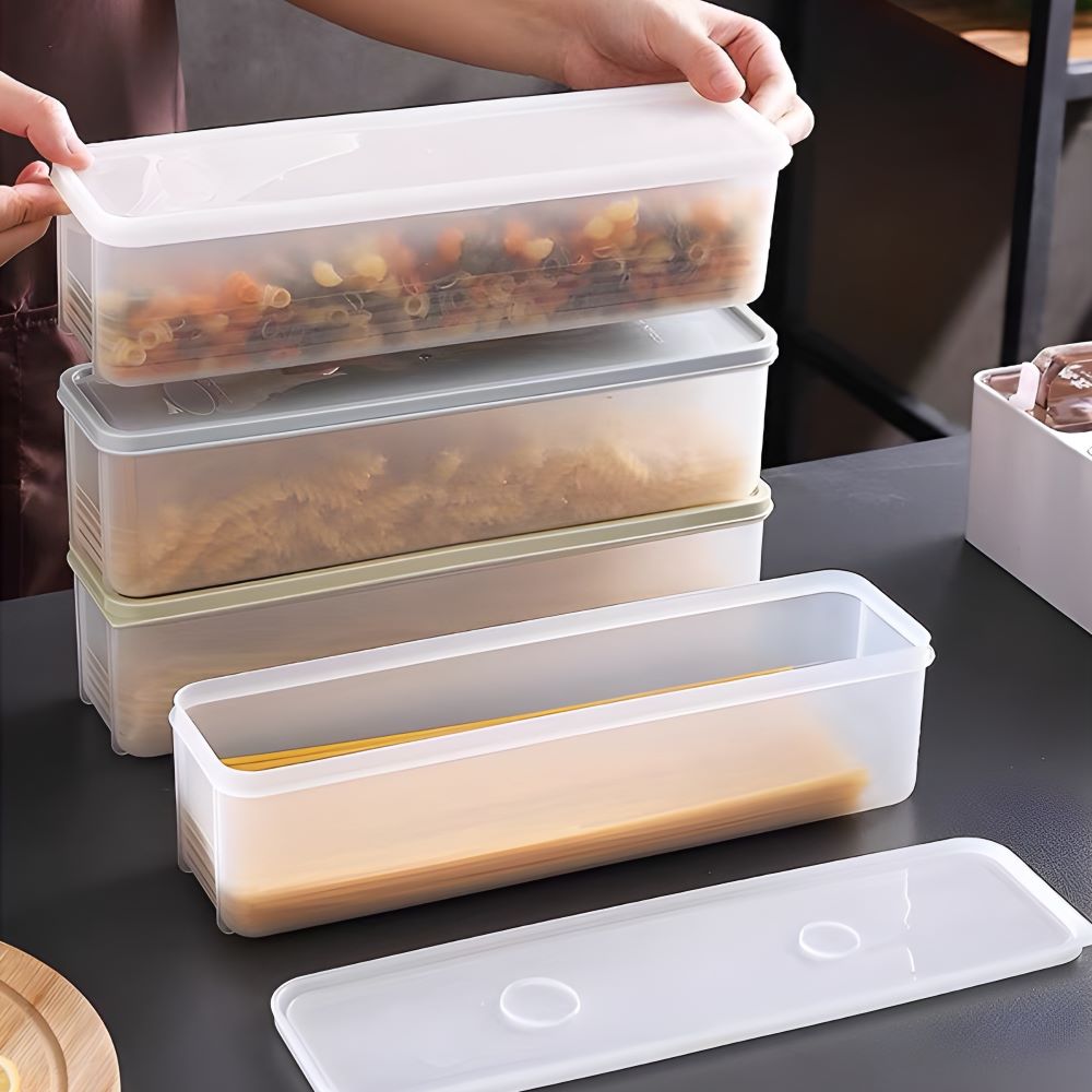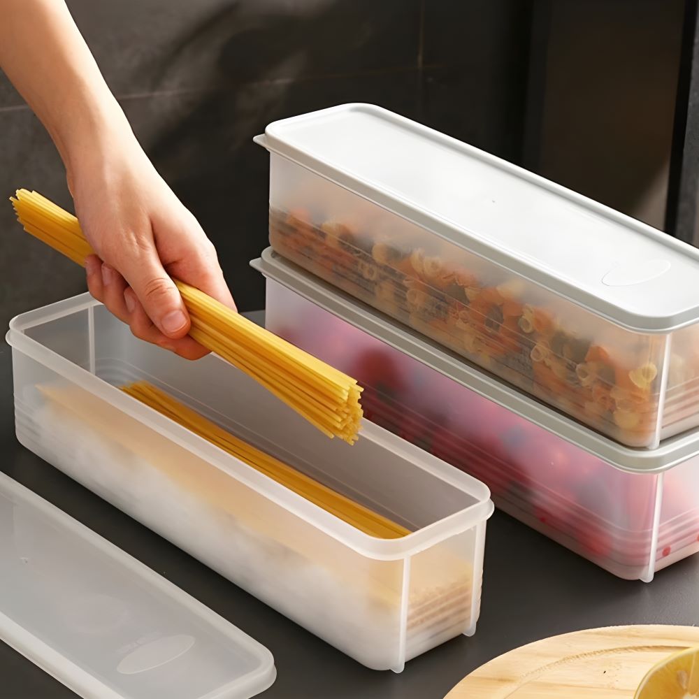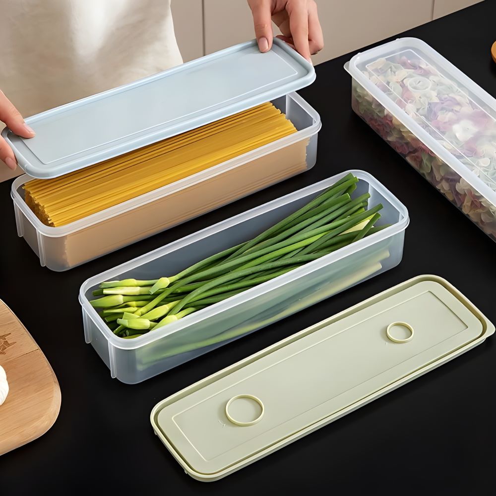 Linh Kiện Khánh Nhân - nhà cung cấp hàng gia dụng tiện ích chuyên nghiệp nhất TP.HCM. Hộp nhựa đựng thực phẩm hình chữ nhật với thiết kế dài, hẹp đặc biệt phù hợp cho mì, nui, pasta. Sản phẩm có nắp đậy kín khí, trong suốt giúp nhận diện thực phẩm dễ dàng, tiện lợi cho việc bảo quản, sắp xếp trong tủ lạnh.