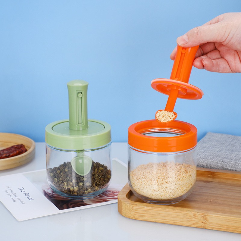 - Hũ lọ đựng gia vị bằng thủy tinh với thiết kế muỗng tùy chỉnh ngắn dài tiện lợi đặc biệt, khi còn ít gia vị có thể đẩy thìa dài, hoặc khi đổ đầy gia vị có thể thu ngắn không bị cấn nắp ra ngoài.