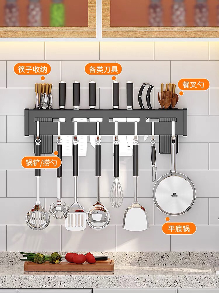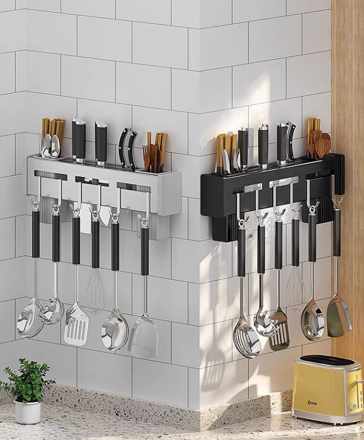 🌱 Kệ có thể cắm được dao, đựng được đũa thìa và có móc treo sử dụng treo muôi, xẻng, kéo, các vật dụng khác...tận dụng 100% khoảng tường trống.