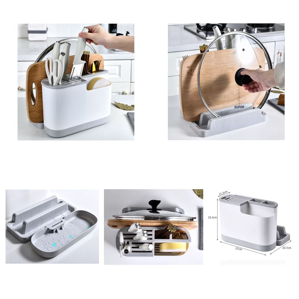 Kệ để dao thớt, đũa muỗng đa năng bằng nhựa là phụ kiện nhà bếp thông minh giúp tối ưu hóa không gian bếp và mang lại sự gọn gàng, tiện lợi trong quá trình nấu nướng. Với thiết kế đa năng cùng chất liệu bền đẹp, sản phẩm là giải pháp hoàn hảo để sắp xếp dụng cụ nhà bếp một cách khoa học và vệ sinh.