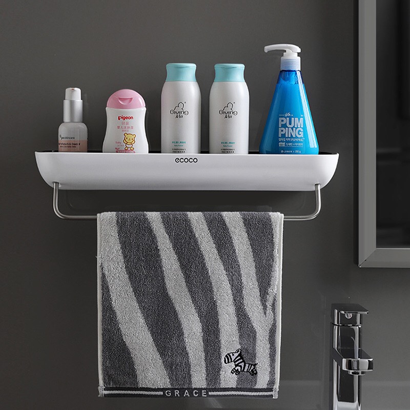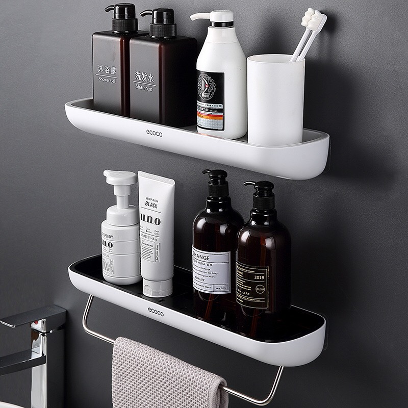 Sản phẩm gồm: Kệ, móc treo và miếng keo dán tường chắc chắn