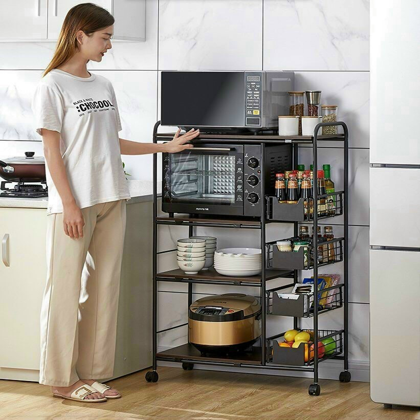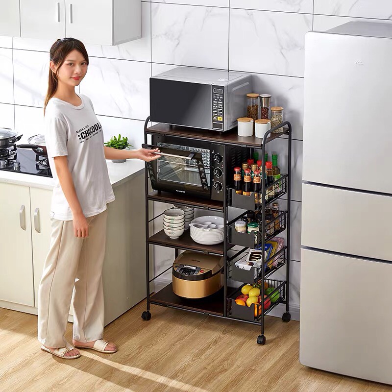 🔸 Không chỉ để đồ kệ còn thiết kế thêm 4 ngăn kéo để bát đĩa, kệ da vị, hoa quả... siêu tiện lợi.