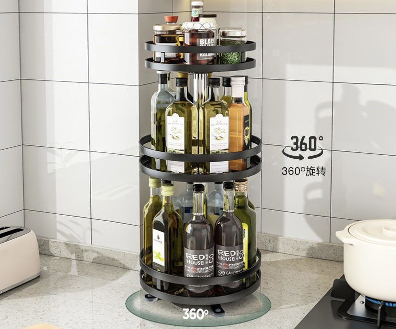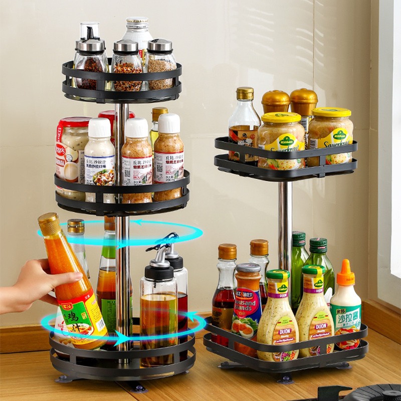 Kệ Đựng Gia Vị Xoay 360 Độ 2 Tầng, 3 Tầng, Kệ Để Đồ Nhà Bếp Thông Minh
