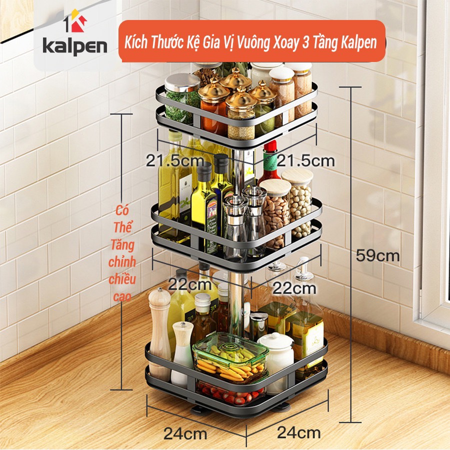 Kệ Đựng Gia Vị Xoay 360 Độ 3 Tầng, Kệ Để Đồ Nhà Bếp Thông Minh Dáng Vuông