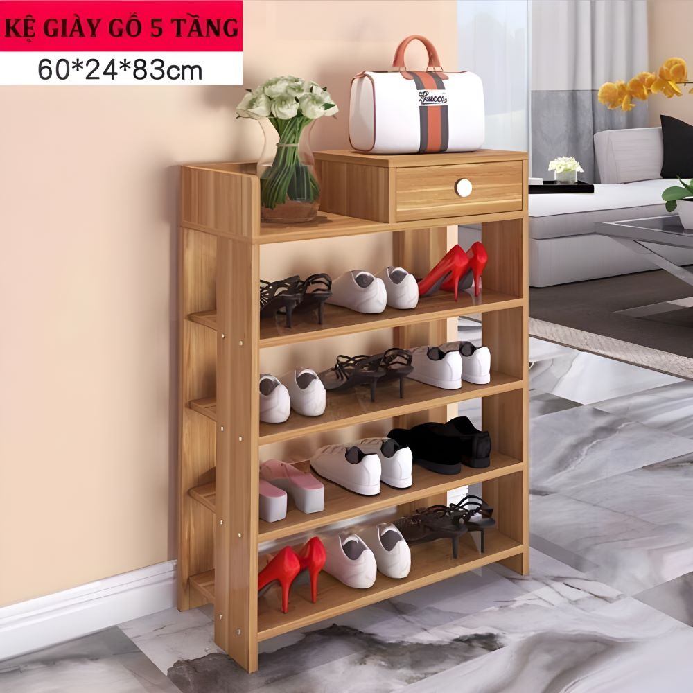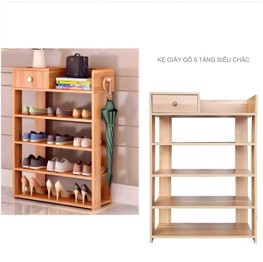 Kệ Giày Dép 5 Tầng Gỗ MDF Cao Cấp Có Ngăn Kéo