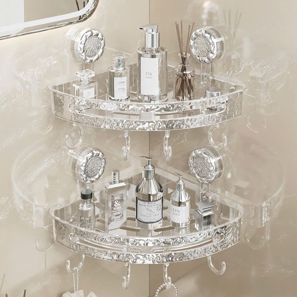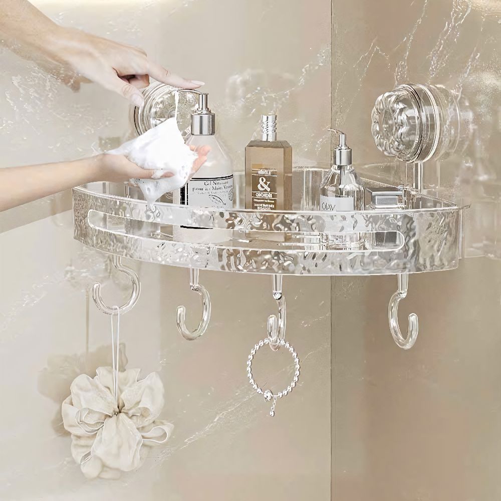 Kệ tam giác trong suốt dán tường hút chân không DNT001 với thiết kế có lỗ thoát nước, không lo ẩm mốc và móc treo tiện dụng. Sản phẩm mang đến giải pháp lưu trữ thông minh cho phòng tắm từ thương hiệu Linh Kiện Khánh Nhân - kho sỉ gia dụng uy tín hàng đầu miền Nam.