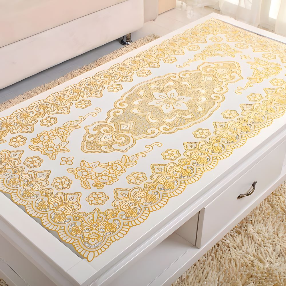 Khăn trải bàn hoa văn dập nổi nhũ vàng sang trọng không chỉ là vật dụng thực tiễn mà còn là món đồ trang trí nội thất đồ dùng phòng ăn đầy tính nghệ thuật, mang đến vẻ đẹp thanh lịch và đẳng cấp cho không gian sống. Sản phẩm do Kho sỉ gia dụng Linh Kiện Khánh Nhân phân phối với cam kết "TIỆN ÍCH – CHẤT LƯỢNG – GIÁ RẺ".