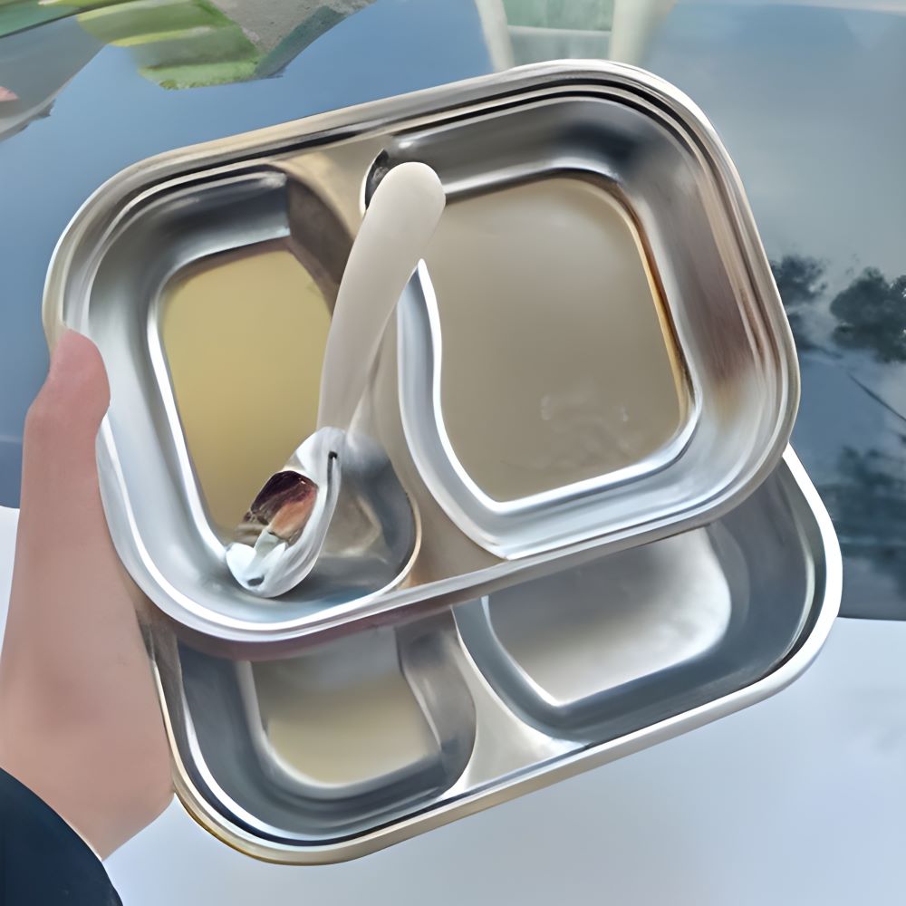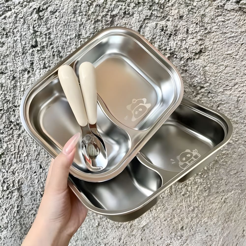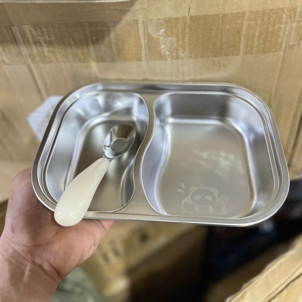 Khay Cơm Inox 2 Ngăn Cho Bé Kèm Muỗng - Giải Pháp Ăn Dặm An Toàn