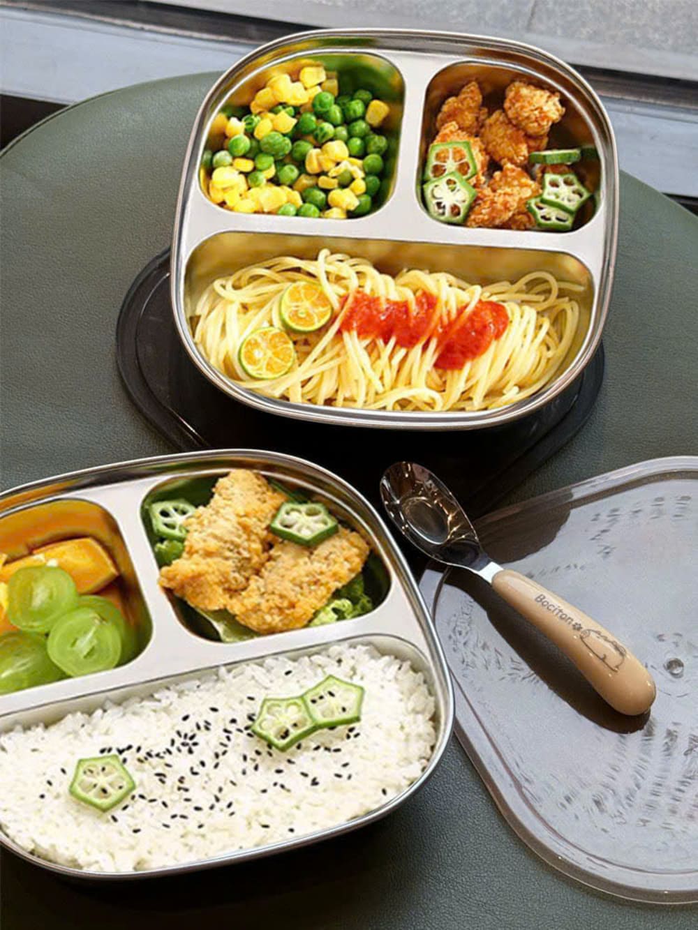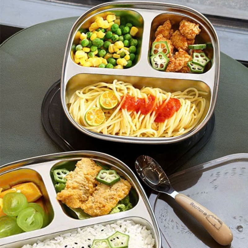 Tên sản phẩm: Khay cơm inox 3 ngăn kèm muỗng cho bé cao cấp
