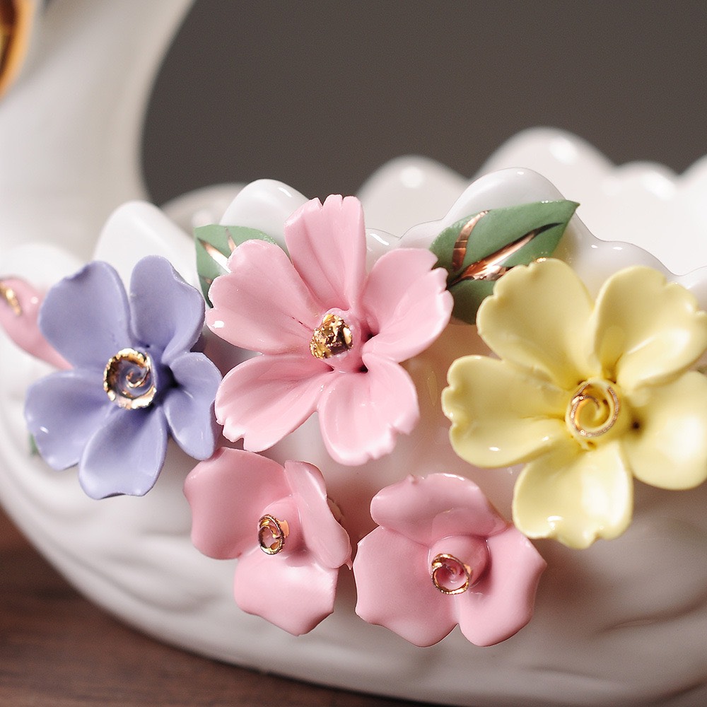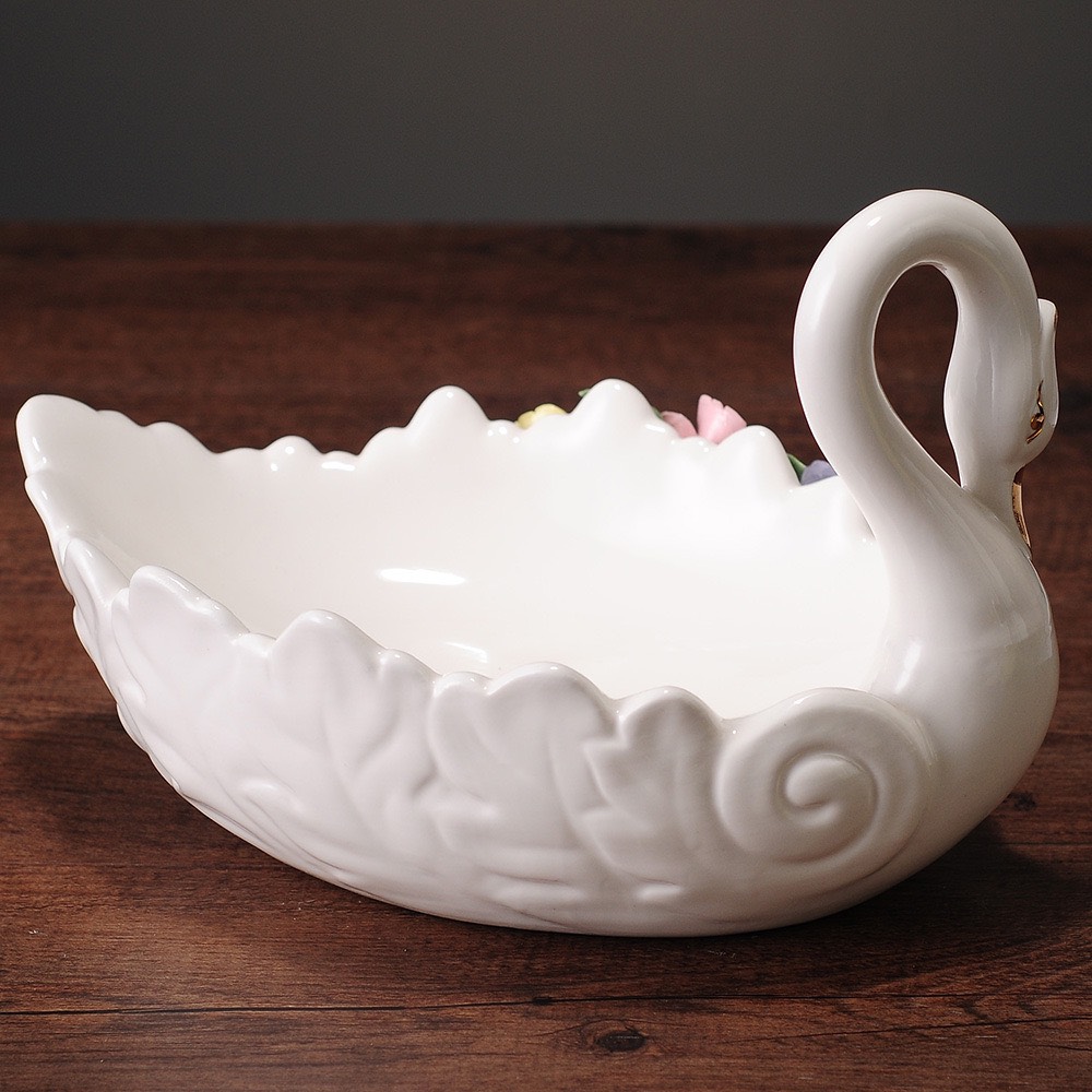 Khay thiên nga sứ đính hoa - món đồ trang trí đẳng cấp mà bất kỳ gia đình nào cũng nên có! Hãy liên hệ ngay với tổng kho sỉ gia dụng Linh Kiện Khánh Nhân để được tư vấn và đặt hàng với giá ưu đãi nhất nhé!