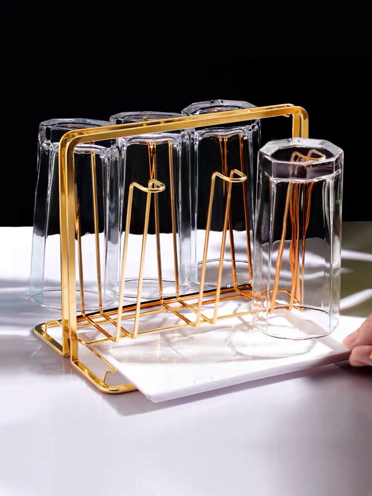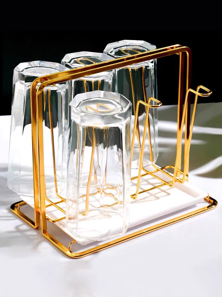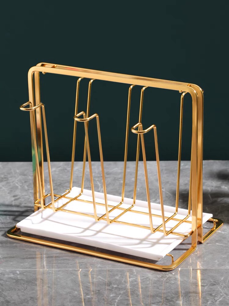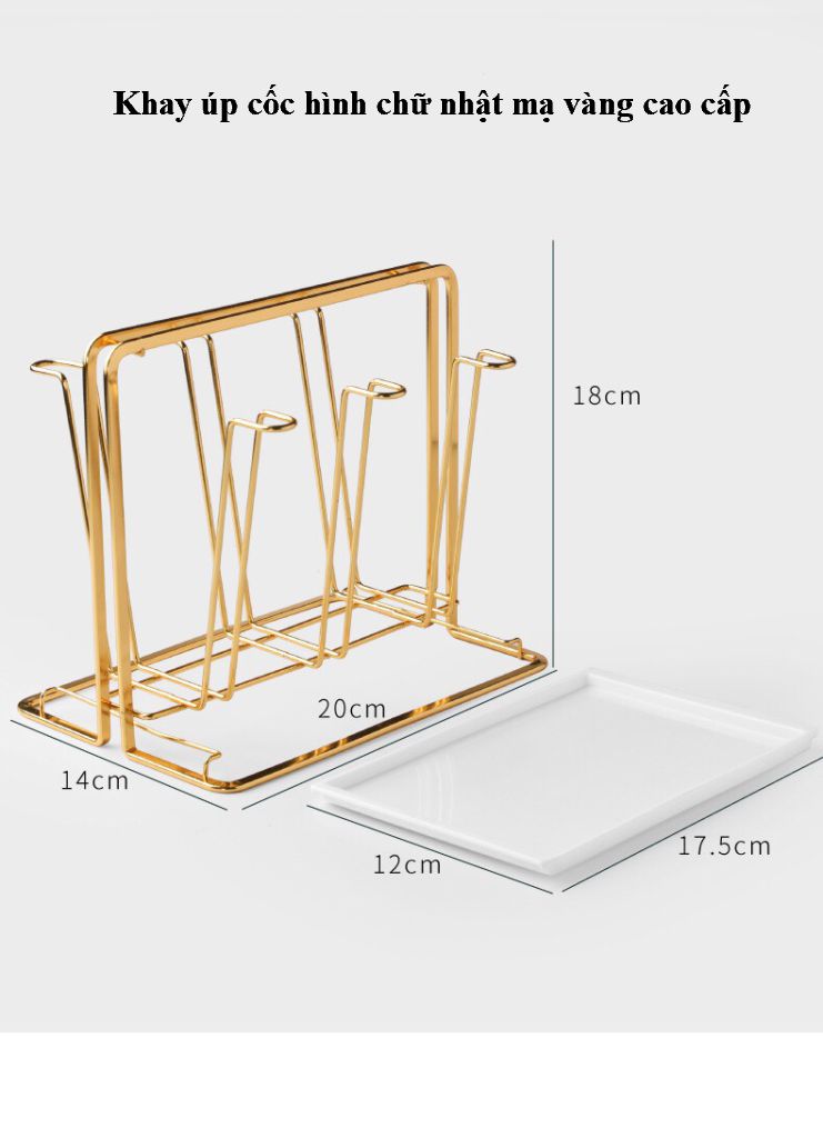 Khay úp cốc hình chữ nhật mạ vàng kèm khay đựng sang chảnh