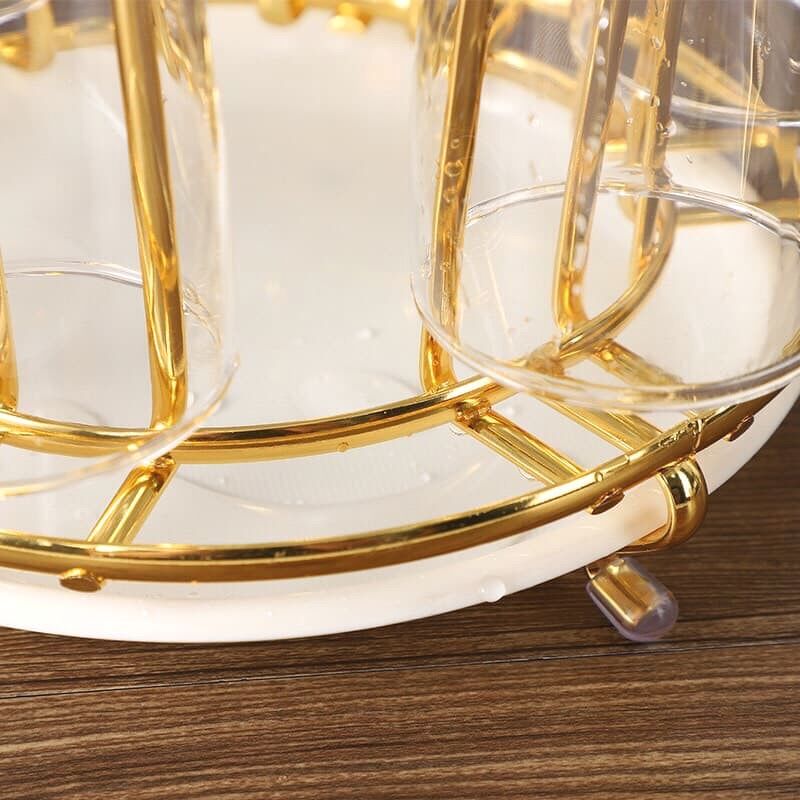 Khay úp cốc hình tròn mạ vàng kèm khay đựng sang chảnh