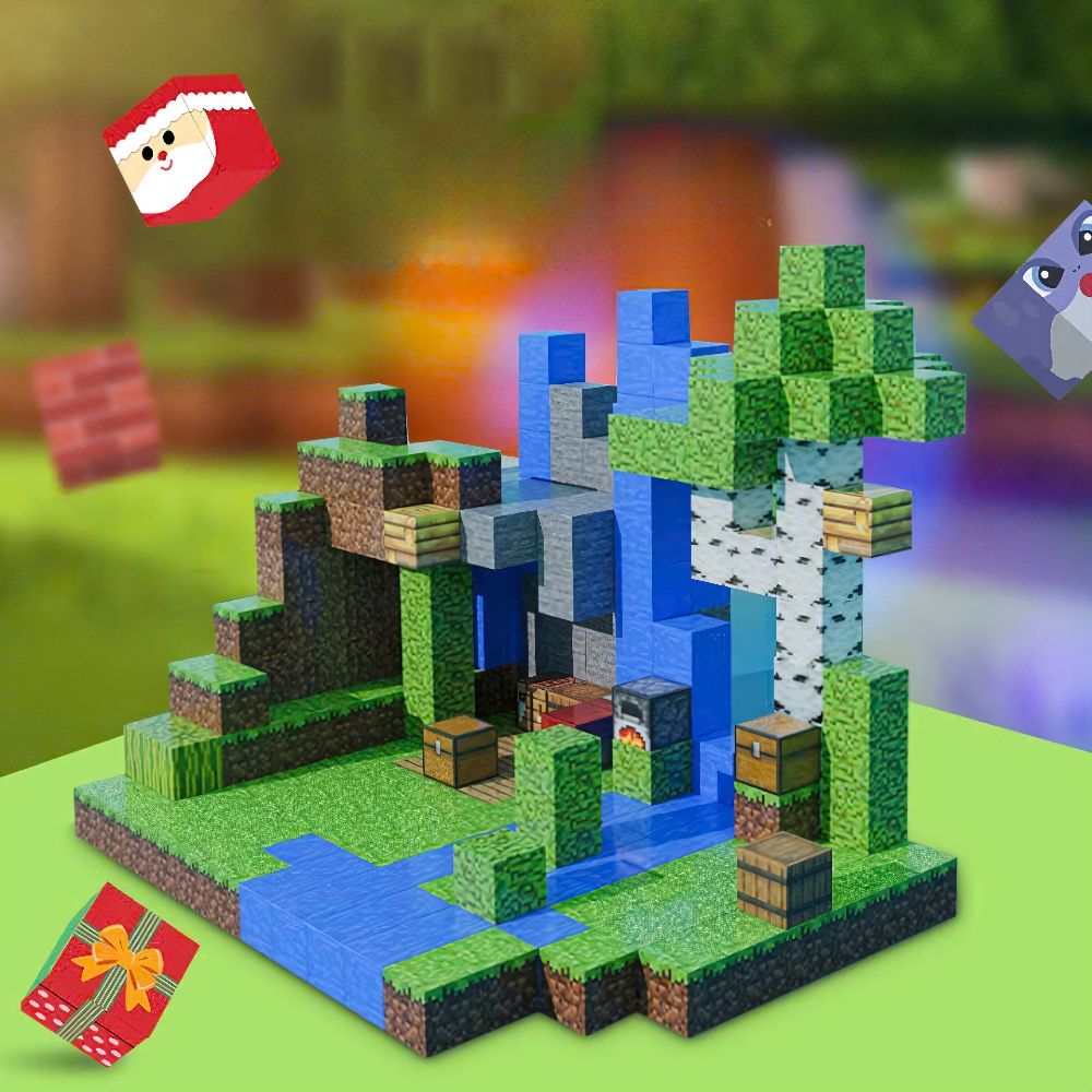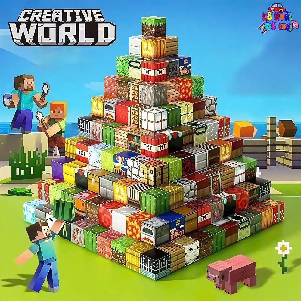 Bộ gồm nhiều khối nam châm với họa tiết đa dạng: gạch, kính, TNT, cỏ, đất, đá… giúp bé xây dựng mô hình theo ý thích.
