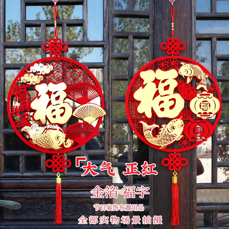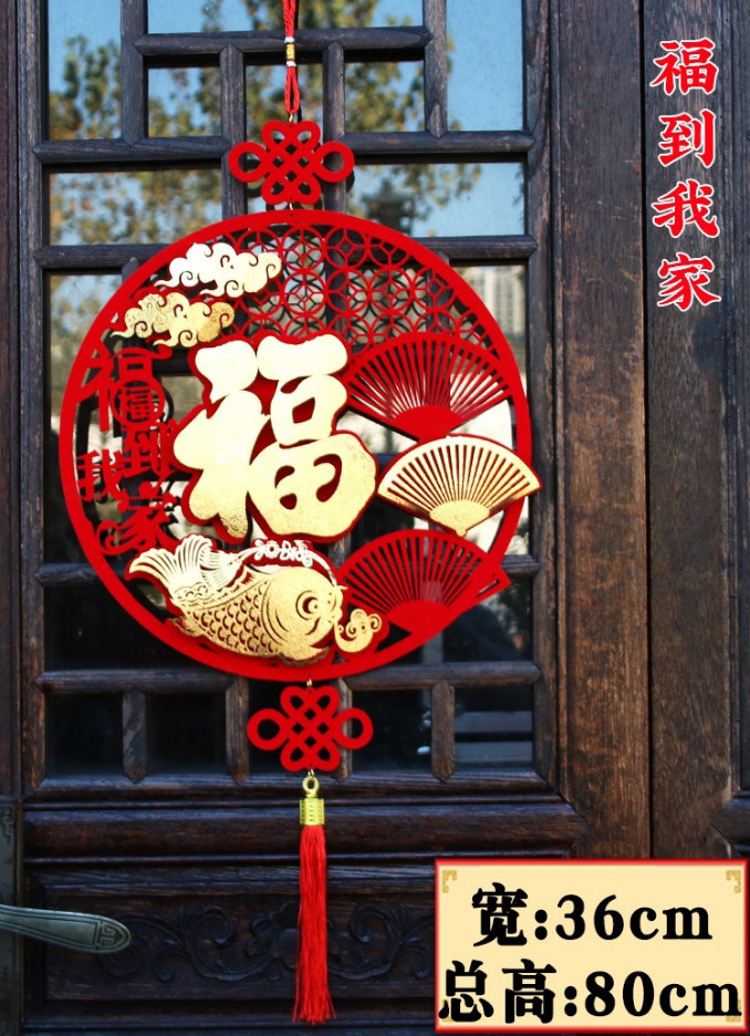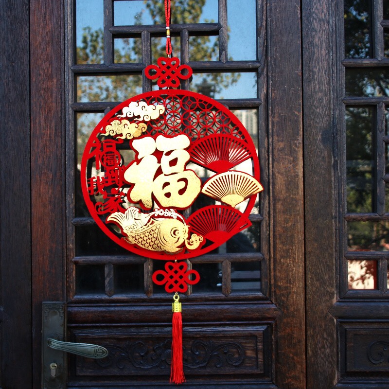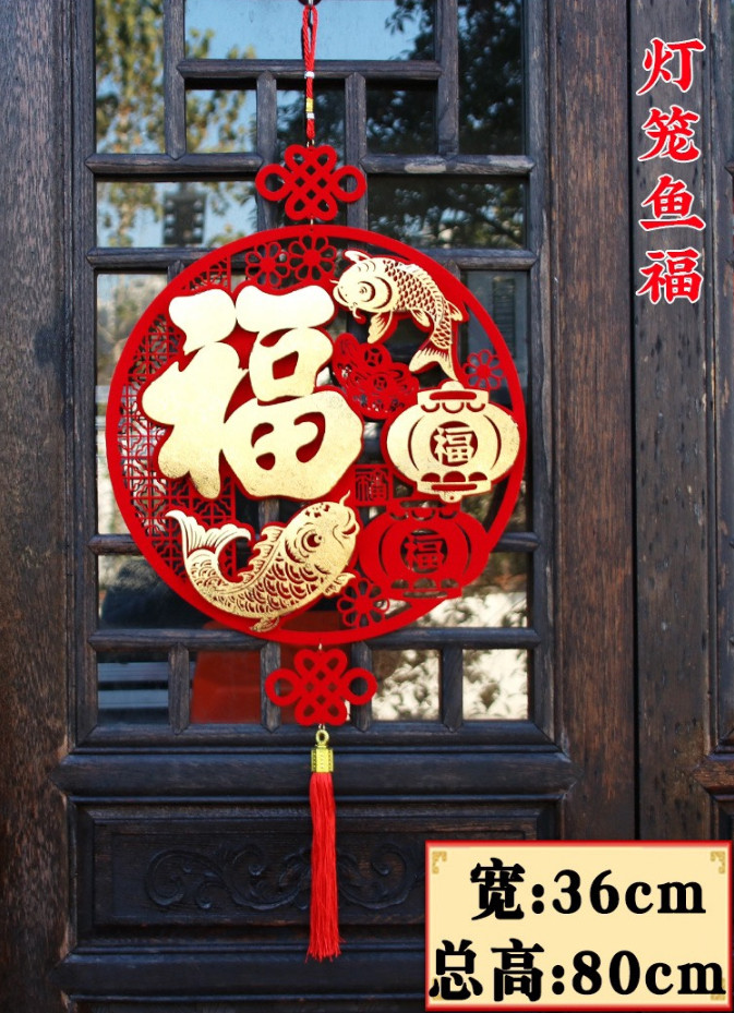 Hình ảnh cá chép hay chữ Phúc màu vàng nổi bật trên nền đỏ.