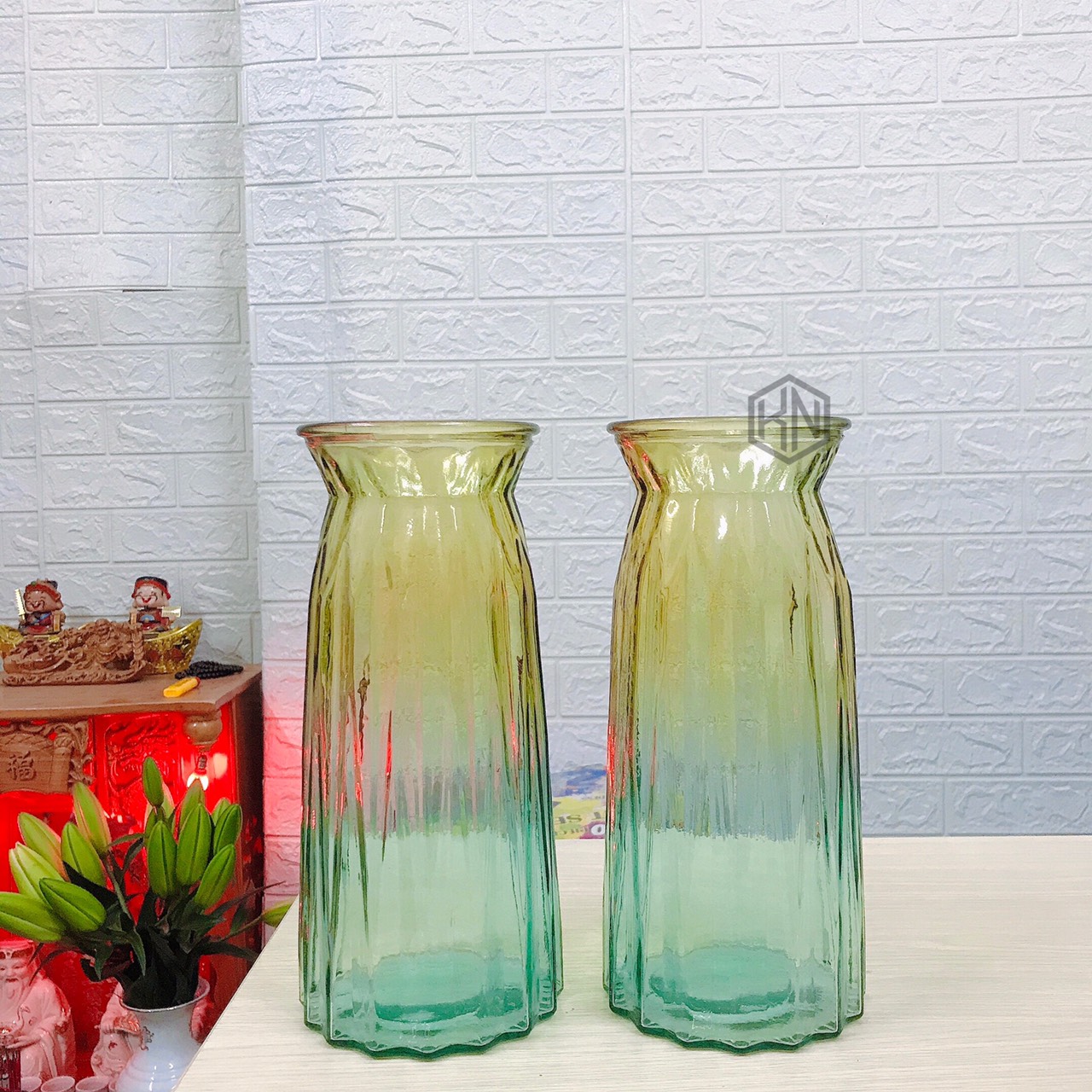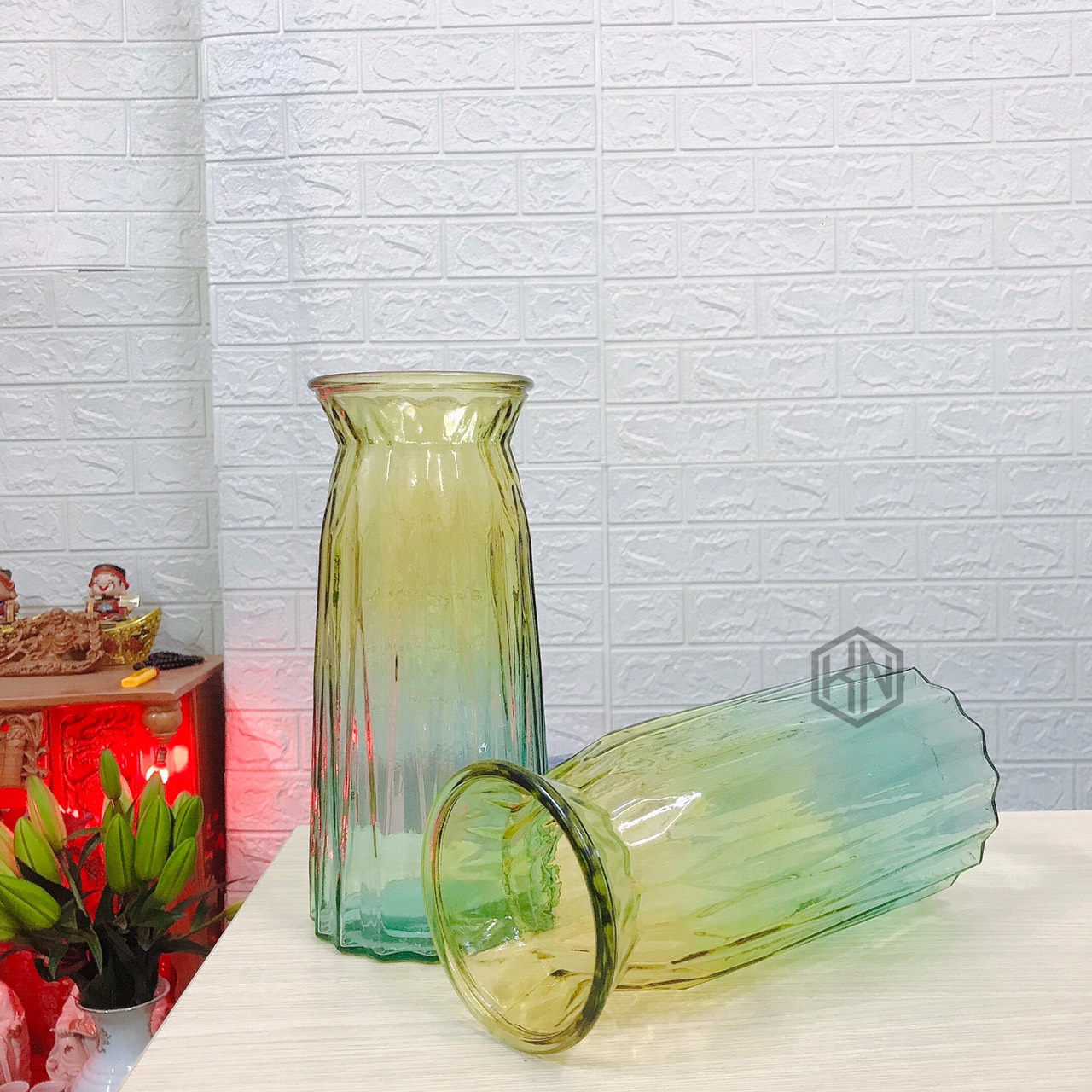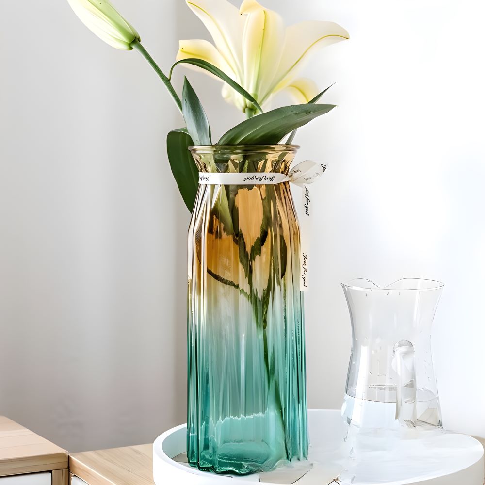 Lọ hoa thủy tinh màu 3D từ tổng kho sỉ gia dụng Linh Kiện Khánh Nhân là điểm nhấn lý tưởng cho không gian sống hiện đại. Màu sắc chuyển đổi tinh tế từ xanh ngọc sang hồng hoặc từ vàng sang xanh tạo nên hiệu ứng thị giác ấn tượng, khiến lọ hoa trở thành tâm điểm của không gian ngay cả khi không có hoa.