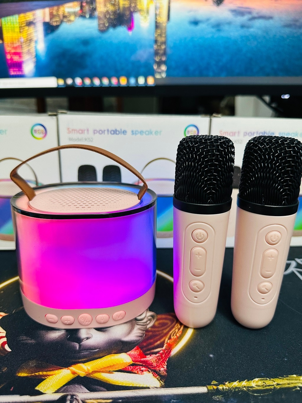 Bộ loa bao gồm một micrô không dây phù hợp cho cả người lớn và trẻ em, nâng cao sự thú vị khi tương tác giữa cha mẹ và con cái. Nhấn và giữ nút cuối cùng trên micrô sẽ chuyển sang chế độ đệm.