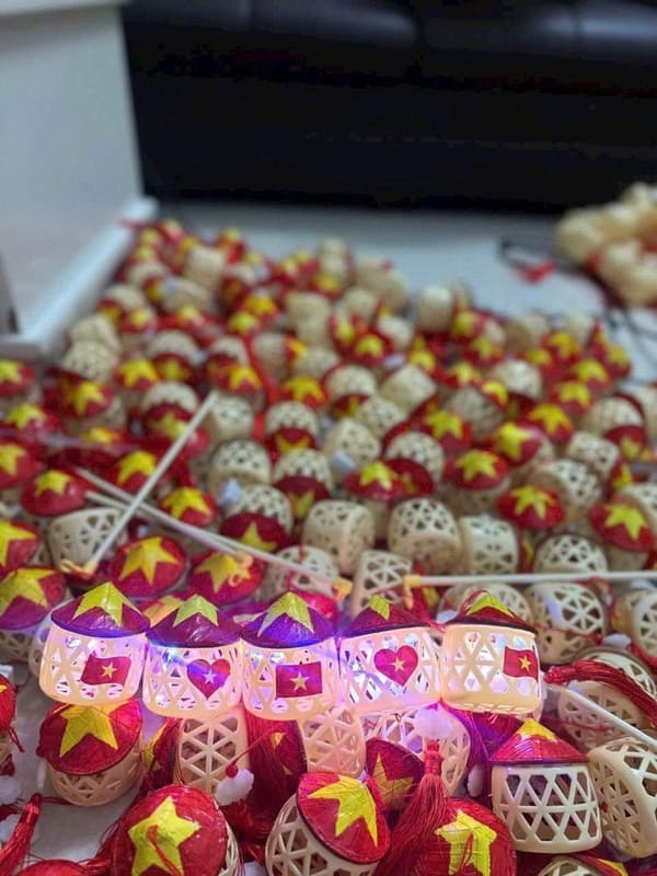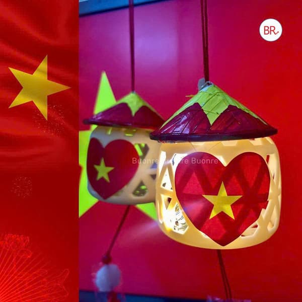 Tên sản phẩm: Lồng đèn trung thu hình nón lá cờ Tổ Quốc phát sáng