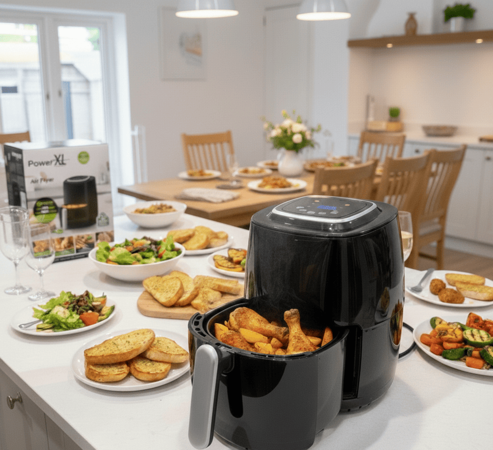 Nồi chiên không dầu PowerXL cảm ứng 5L giúp chế biến món ăn giòn ngon – ít dầu mỡ – tốt cho sức khỏe. Công nghệ chiên khí nóng đối lưu 360° giúp thực phẩm chín đều, vàng giòn bên ngoài mà vẫn mềm ẩm bên trong. Dung tích lớn 5L phù hợp cho gia đình 3–5 người, thao tác cảm ứng hiện đại, dễ sử dụng mỗi ngày. 🍟🍗