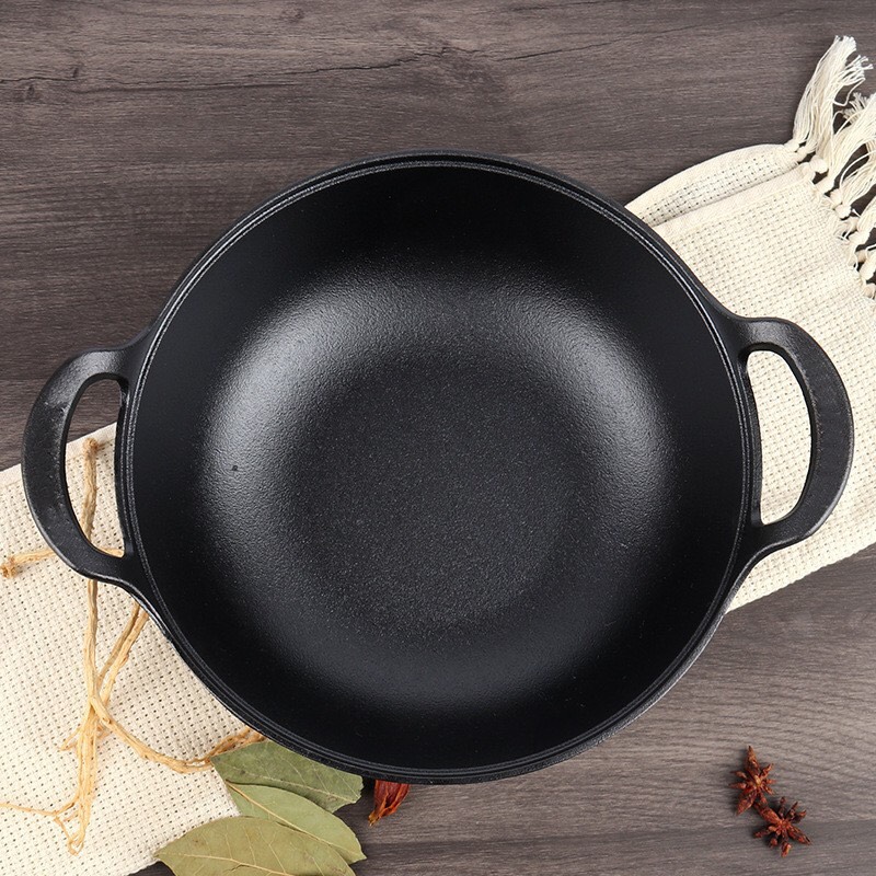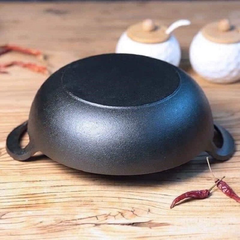 🔸 Chảo gang sâu lòng đúc thủ công nguyên khối 2 quai dùng được bếp từ, bếp ga, bếp hồng ngoại, bếp củi, bếp than hoa...🥰🥰🥰