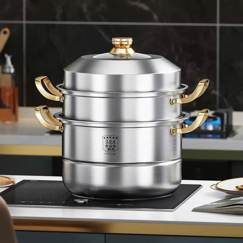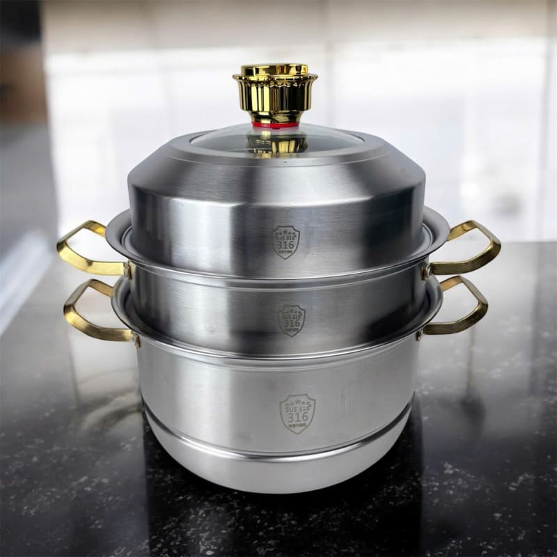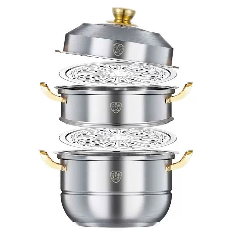 Nồi hấp inox 3 tầng size 30cm là giải pháp nấu hấp tiện lợi cho gia đình đông người và quán ăn. Thiết kế 3 tầng rộng rãi giúp hấp nhiều món cùng lúc, giữ trọn hương vị và dinh dưỡng. Chất liệu inox dày cao cấp bền bỉ, truyền nhiệt tốt, sử dụng an toàn và lâu dài. 🍲✨