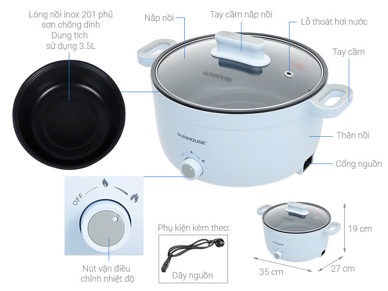 - Chức năng: Lẩu, nấu canh, chiên, xào…