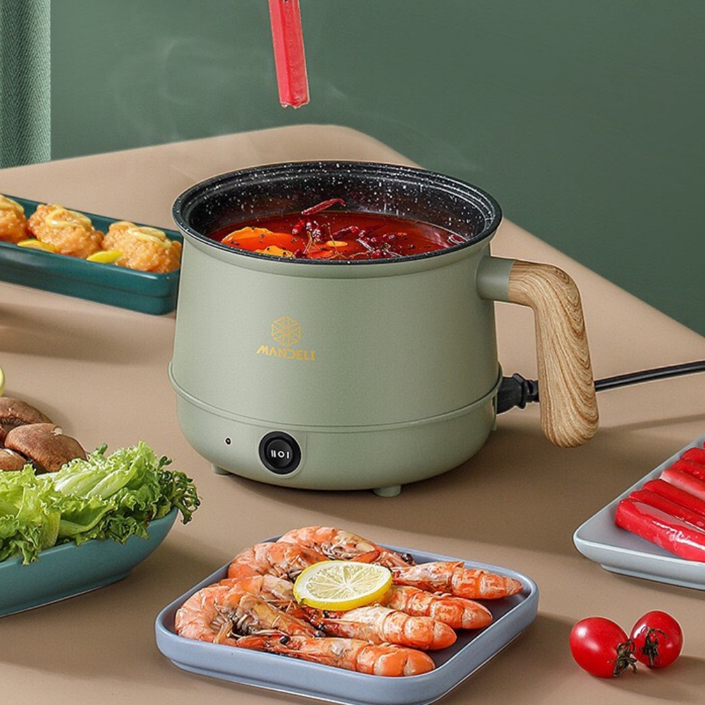 - Nồi lẩu điện mini kiểu dáng gọn nhẹ, dễ dàng đặt trên bàn ăn, không chiếm nhiều diện tích.