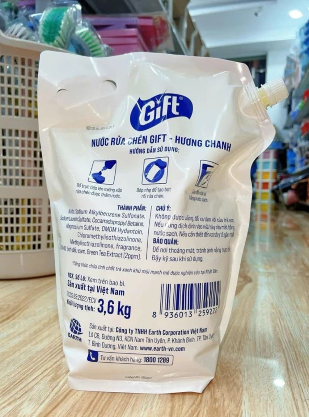 Tên sản phẩm: Nước rửa chén Gift siêu sạch túi 3.5kg
