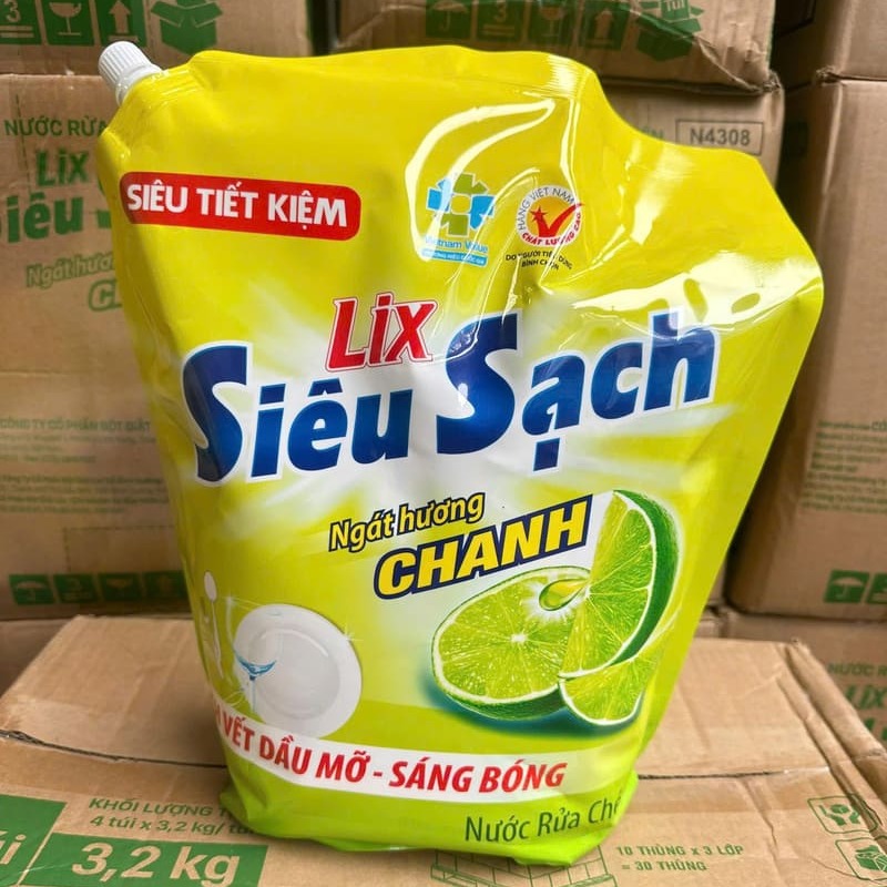 Tên sản phẩm: Nước rửa chén Lix siêu sạch túi 3.2kg