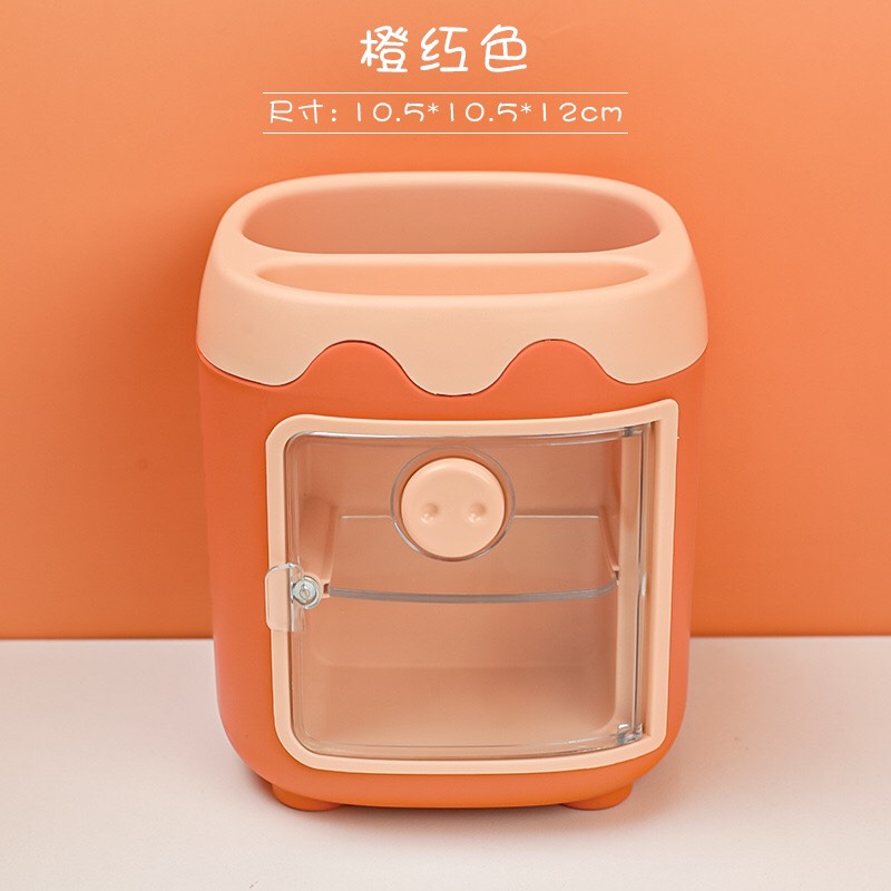 📍 Thiết kế với 2 ngăn đứng thích hợp cắm bút, thước hoặc son, cọ trang điểm,…và 2 ngăn kéo dạng trong suốt thích hợp để băng keo, trang sức, bông tai…vô cùng đa năng.