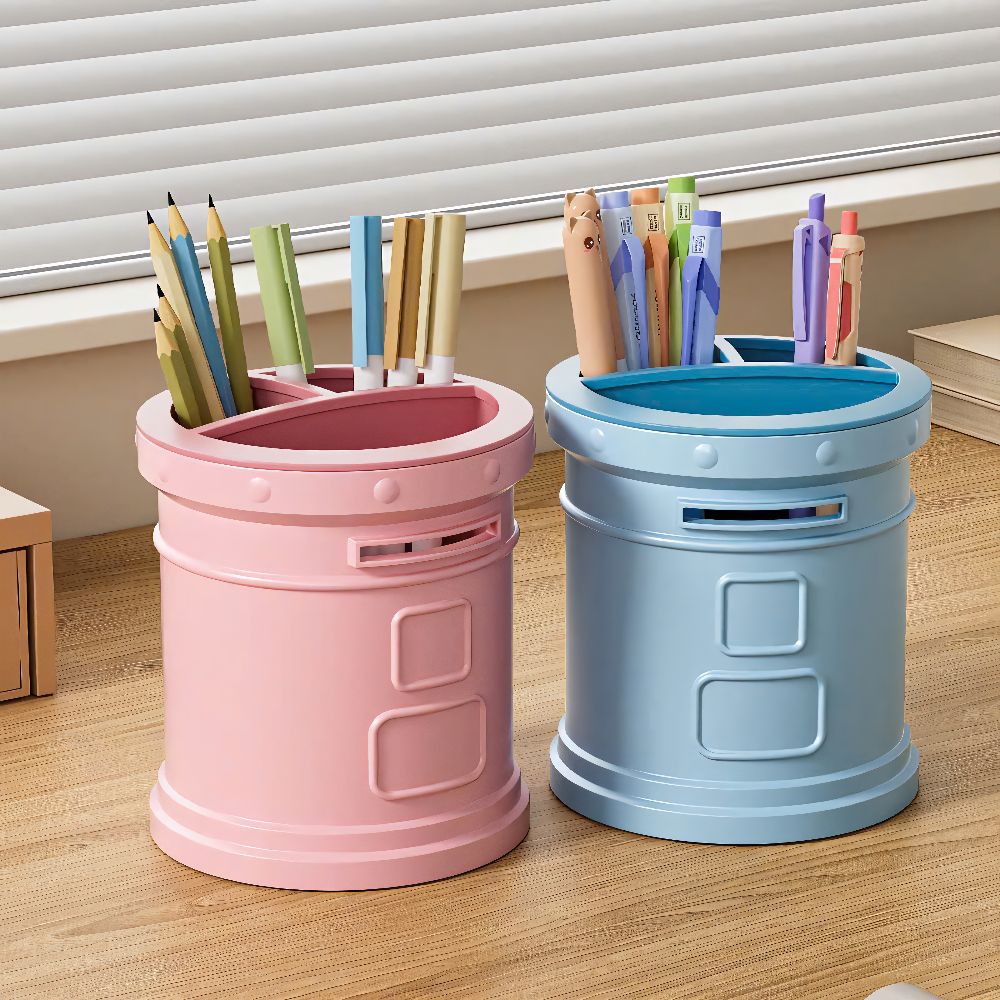 Thiết kế ngăn hình tròn giúp tối ưu không gian lưu trữ, cho phép đặt nhiều bút cùng lúc mà vẫn dễ dàng lấy ra sử dụng. Người dùng có thể linh hoạt phân loại theo màu sắc, chức năng hoặc tần suất sử dụng, mang lại hiệu quả cao trong công việc và học tập.