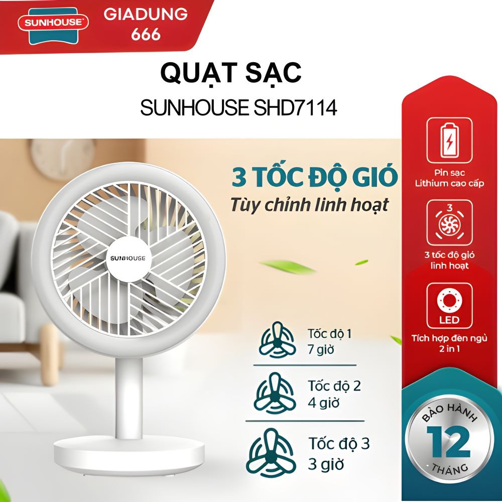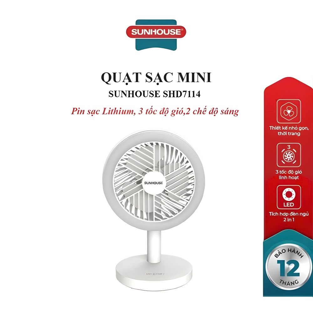 Thương hiệu Linh Kiện Khánh Nhân - tổng kho sỉ gia dụng thông minh tại TP. Hồ Chí Minh, tự hào giới thiệu sản phẩm quạt sạc mini Sunhouse SHD7114 với nhiều ưu điểm vượt trội: