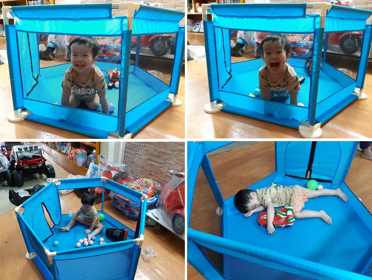 – Quây bóng có kích thước lớn để bé ngồi chơi bên trong vô cùng an toàn như một chiếc cũi lớn. Vừa giúp các bậc phụ huynh rảnh tay hơn, để làm những công việc nội trợ khác.