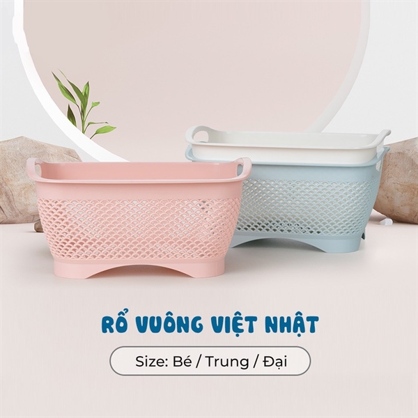 - Rổ vuông Việt Nhật được làm từ chất liệu nhựa PP cao cấp, bền đẹp, chịu lực tốt, có 3 size khác nhau phù hợp với nhiều mục đích sử dụng
