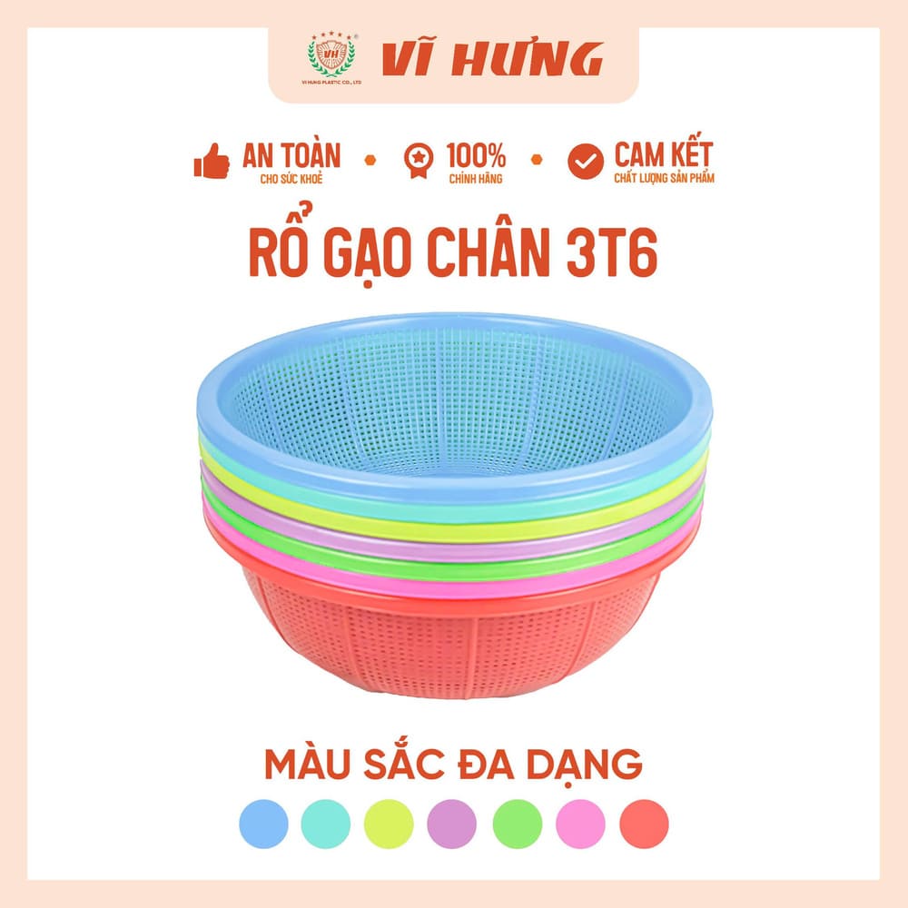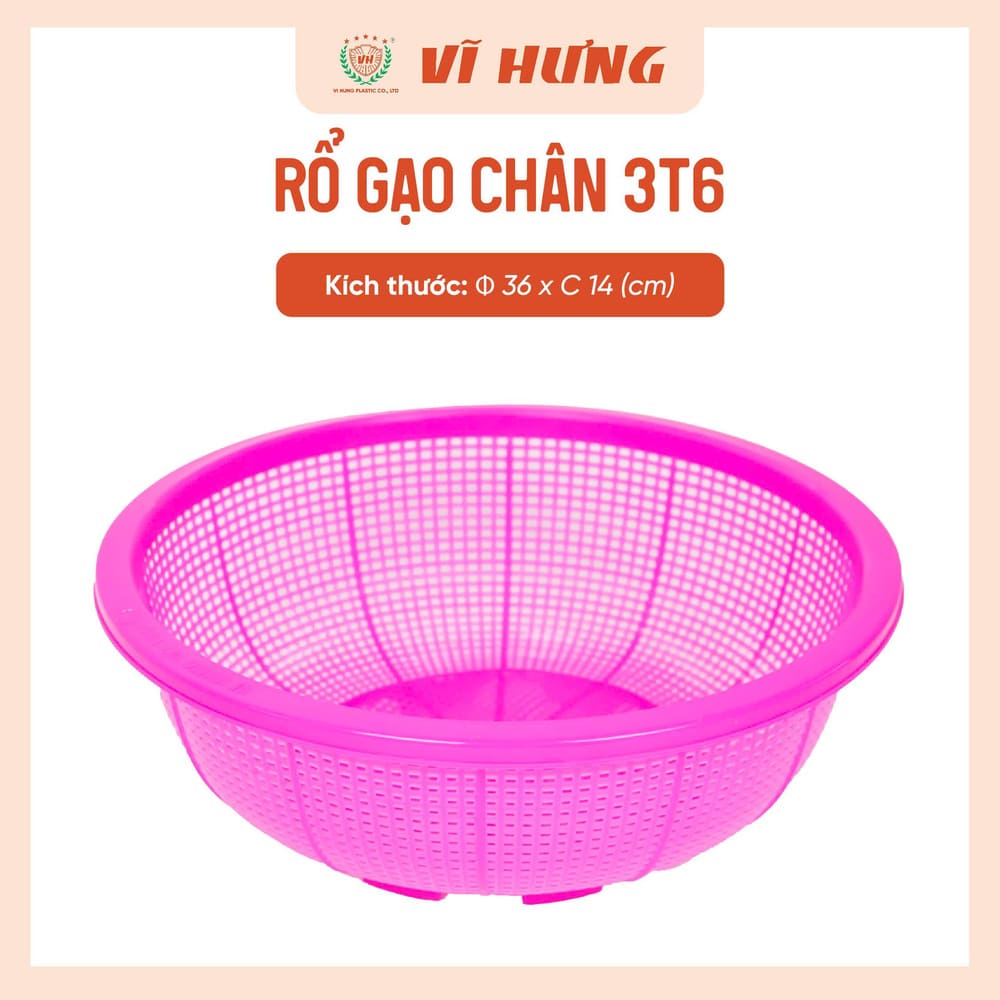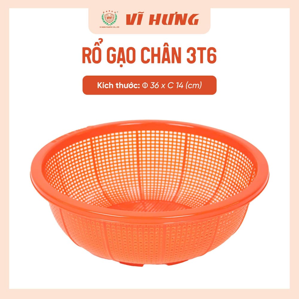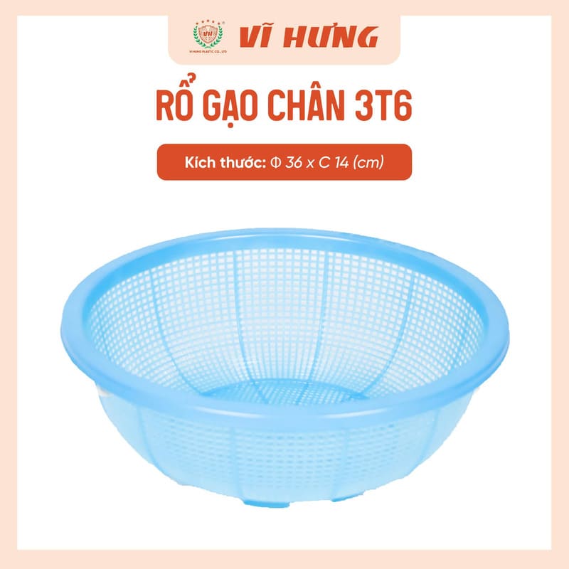 Tên sản phẩm: Rổ gạo có chân đế nhựa Vĩ Hưng 3T6 6494