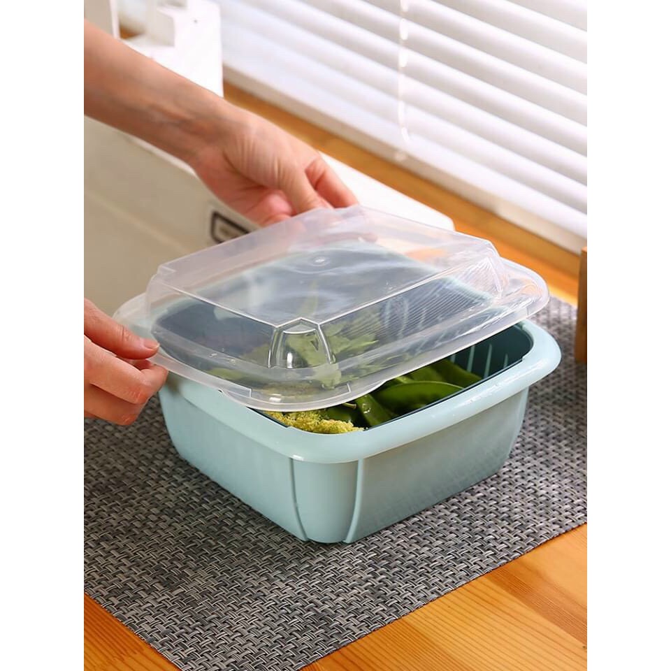 + Rổ 2 lớp + kèm nắp đậy rất tiện lợi khi để rau quả, nước không bị chảy khi sử dụng đồng thời có nắp đậy chống bụi và côn trùng.