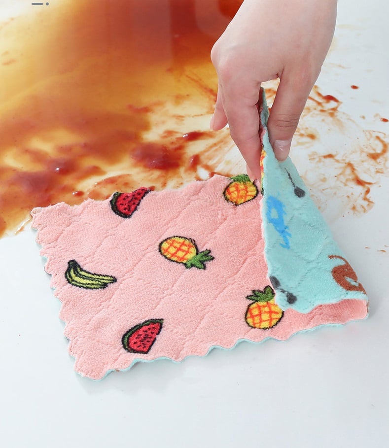 Set khăn lau họa tiết hoa quả 25x25cm – dòng sản phẩm tiện ích gia dụng nhỏ gọn, dễ bán, dễ chốt đơn với mọi tệp khách. Sản phẩm làm từ vải bông mềm mịn 2 lớp, thấm hút cực tốt, không để lại vệt khi lau, đặc biệt thân thiện với các bề mặt thủy tinh – gỗ – inox. Họa tiết trái cây ngẫu nhiên sinh động, phù hợp bán cho mẹ bỉm, hộ gia đình, cửa hàng tiện lợi, tiệm đồ dùng, hoặc gian hàng online.