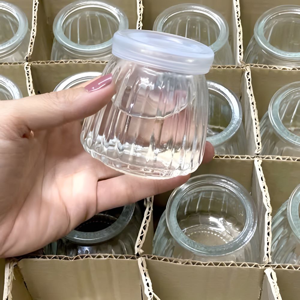 Set 12 hủ sữa chua trắng sọc 100ml - Lựa chọn hoàn hảo cho gia đình yêu thích làm sữa chua tại nhà, mang đến thiết kế sọc trắng đẹp mắt với chất liệu thủy tinh an toàn và tiện dụng.