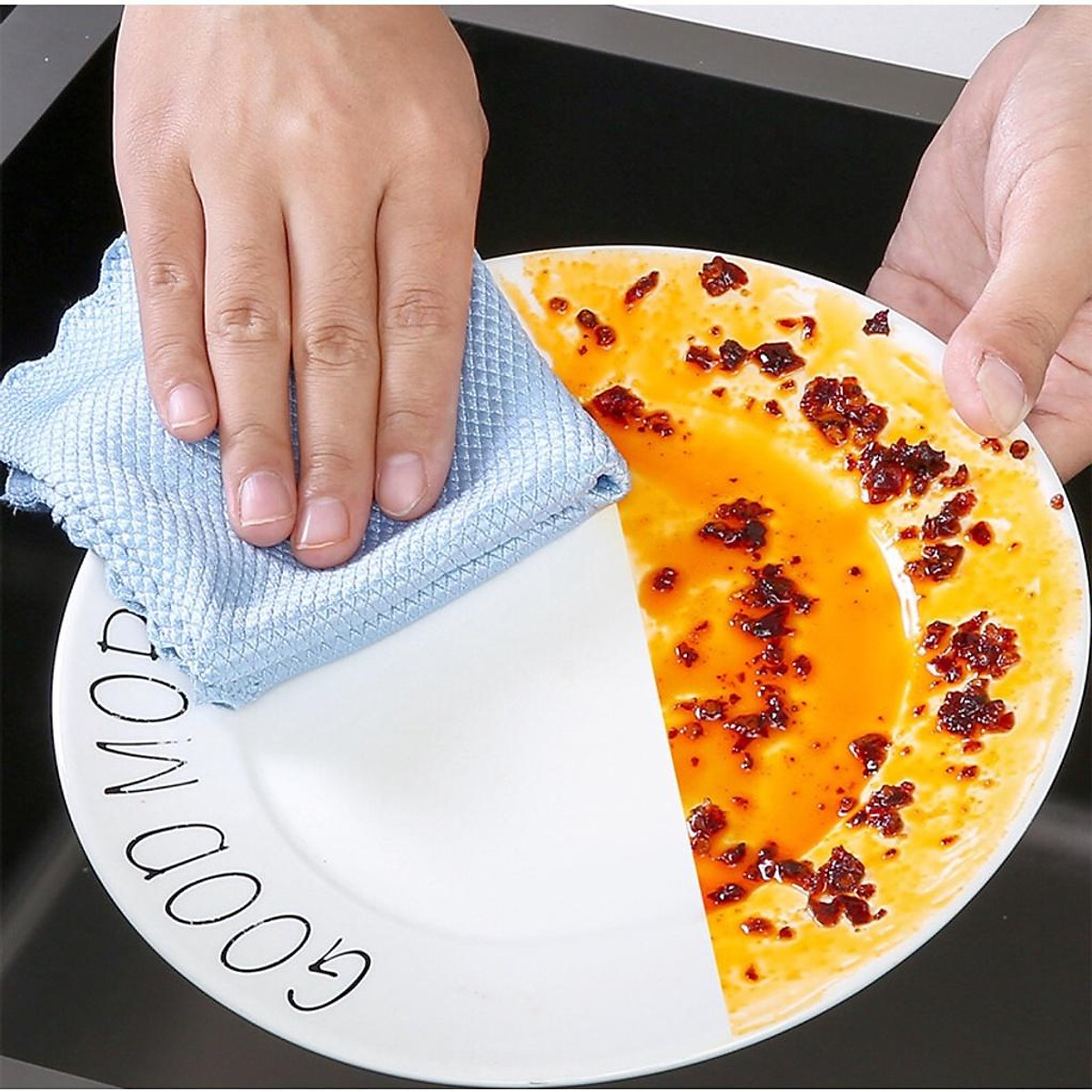 - Ưu điểm vượt trội của khăn là có thể lau mọi về mặt, đặc biệt lau các đồ inox, các vật dụng mạ vàng sẽ không sợ trầy xước đồ dùng. Đối với các bề mặt kính, thủy tinh hoàn toàn không để lại vệt nước, vệt khăn hay sợi bông vải