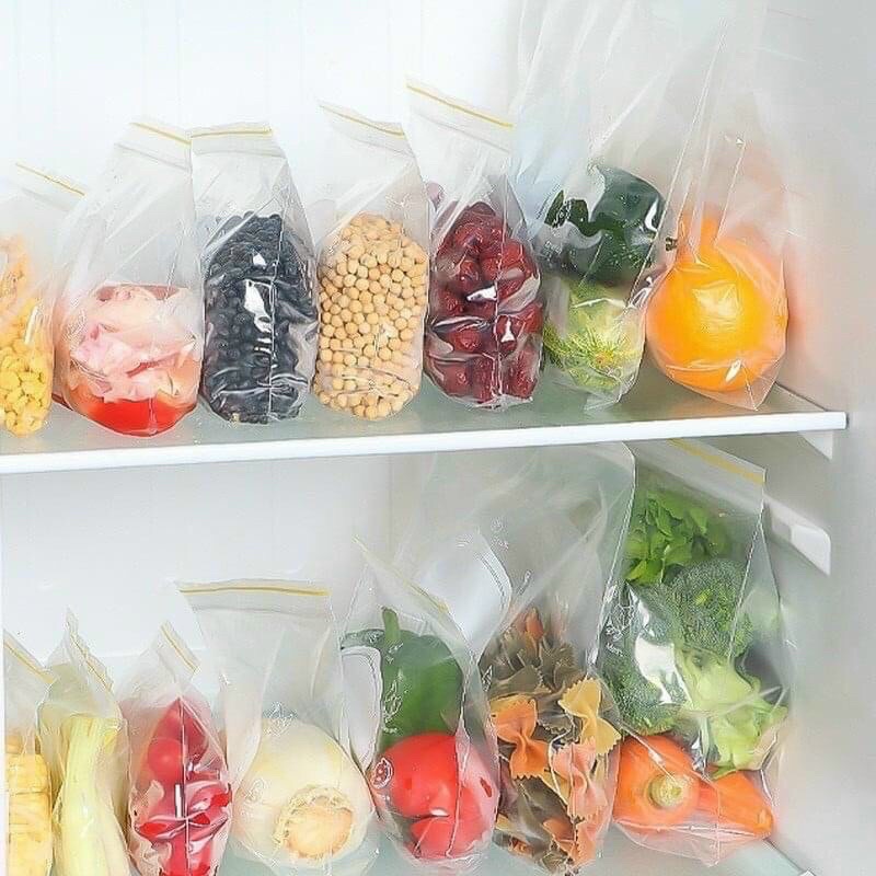 - Túi zip đựng thực phẩm, thịt, cá, rau củ, trái cây tươi mà không gây mùi cho tủ lạnh