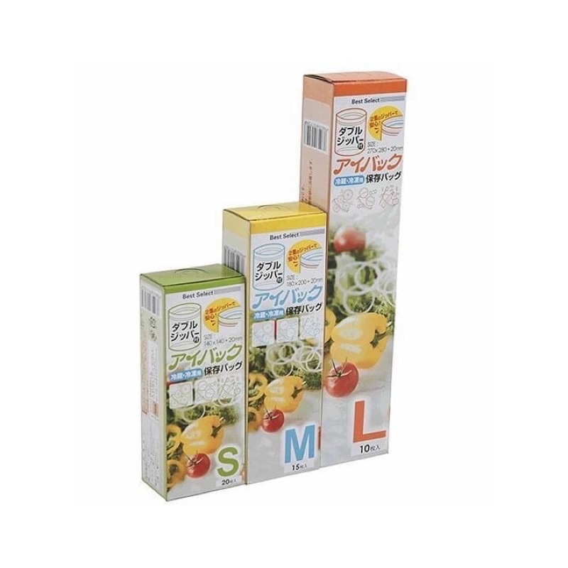 Túi zip bảo quản thực phẩm Nhật 3 size S M L, Túi sử dụng trong lò vi sóng và tủ đông ( 1 Set 3 hộp 3 size)
