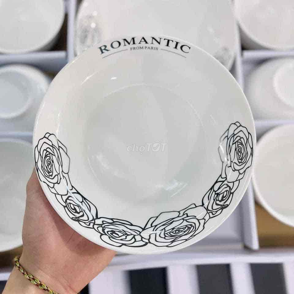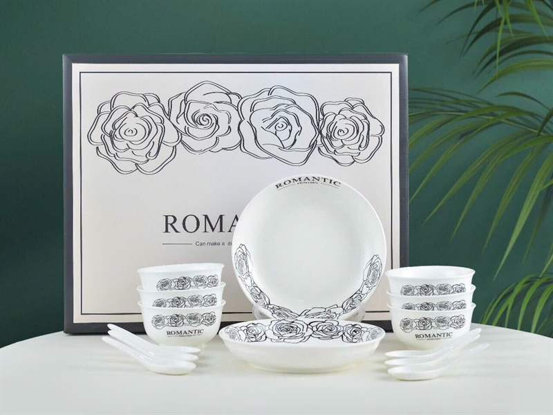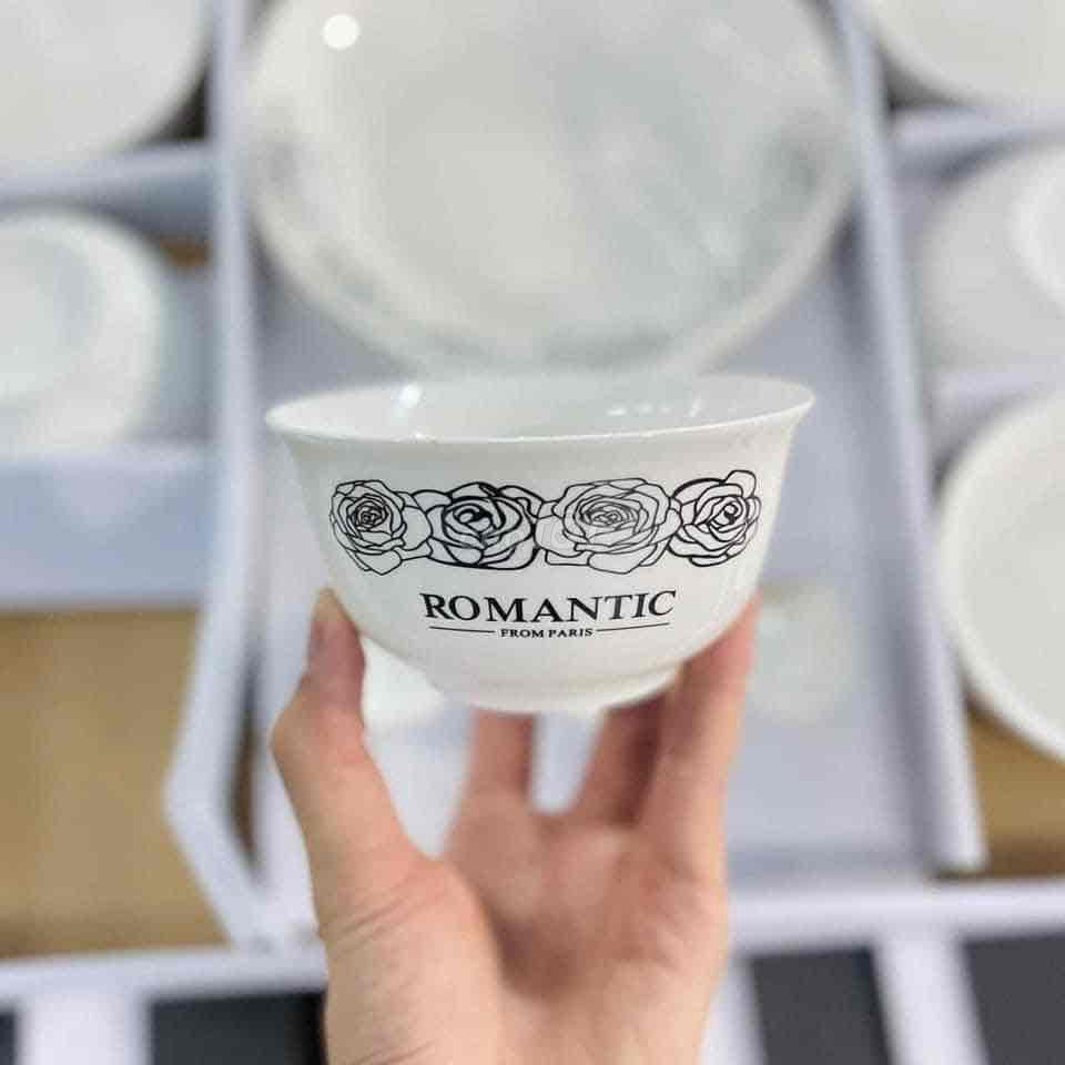 🍲🥢 Set bát đĩa hoa hồng 14 chi tiết trắng đen sang trọng