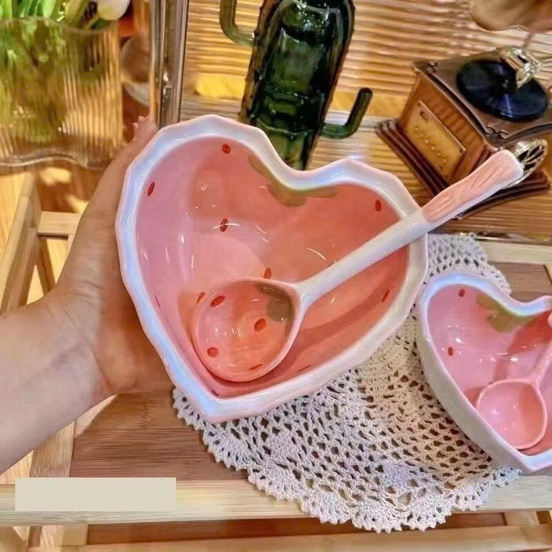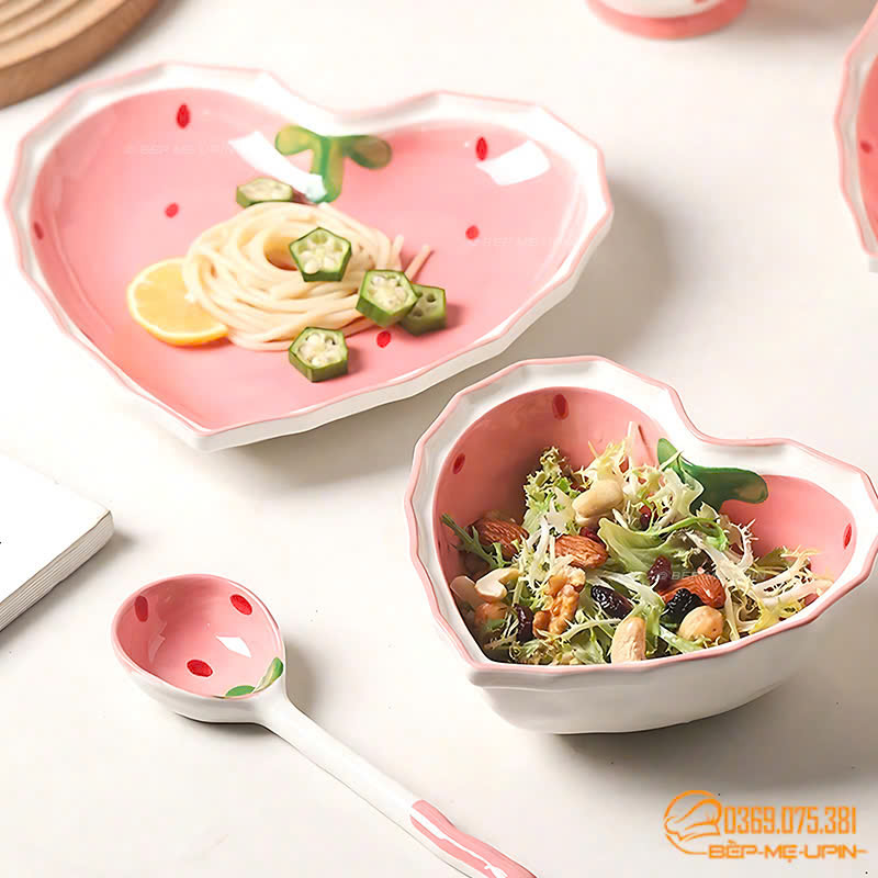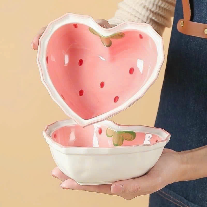 🥣🥣Bát sứ hình trái tim họa tiết trái dâu bao hợp lý, làm bộ ăn bao sang chảnh 🥰